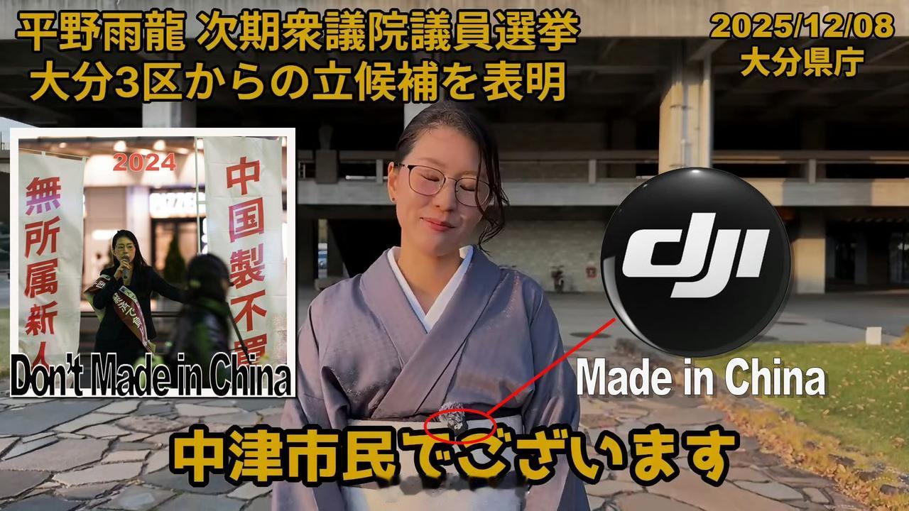 【抵制中国货的日本政客使用中国货】 日本反华政客平野雨龙,在8日宣布参选议员的宣传视频里,被发现戴着中国大疆公司生产的麦克风,而她此前多次宣传“抵制中国货”的活动。