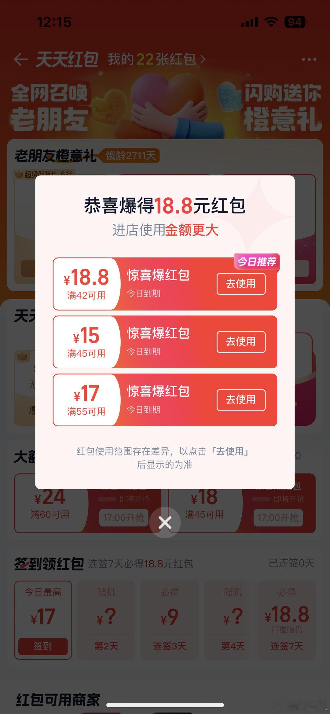 哈哈,我来当分母了,拉低大家的中奖率!都来说说,你们中了多少?操作路径:打开淘宝APP → 首页点击【闪购】频道 → 搜索框输入"老朋友" → 查看饿龄并领取礼包。