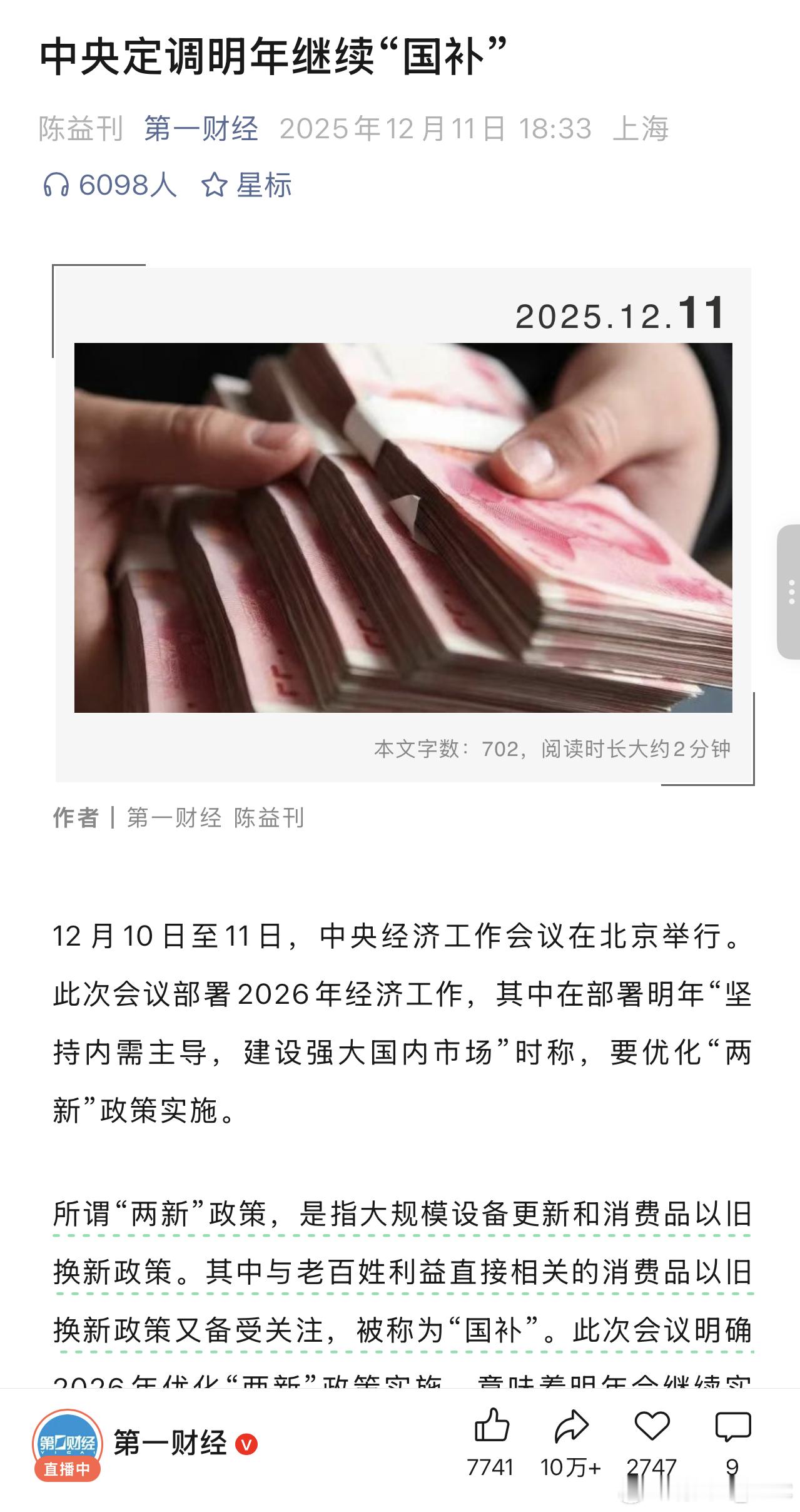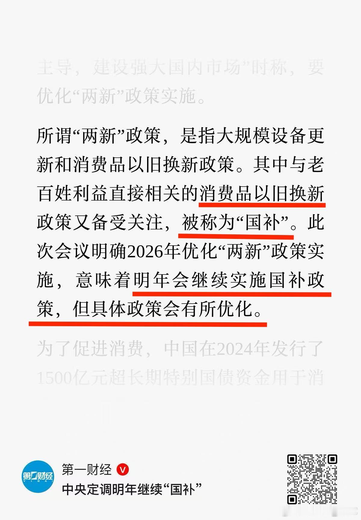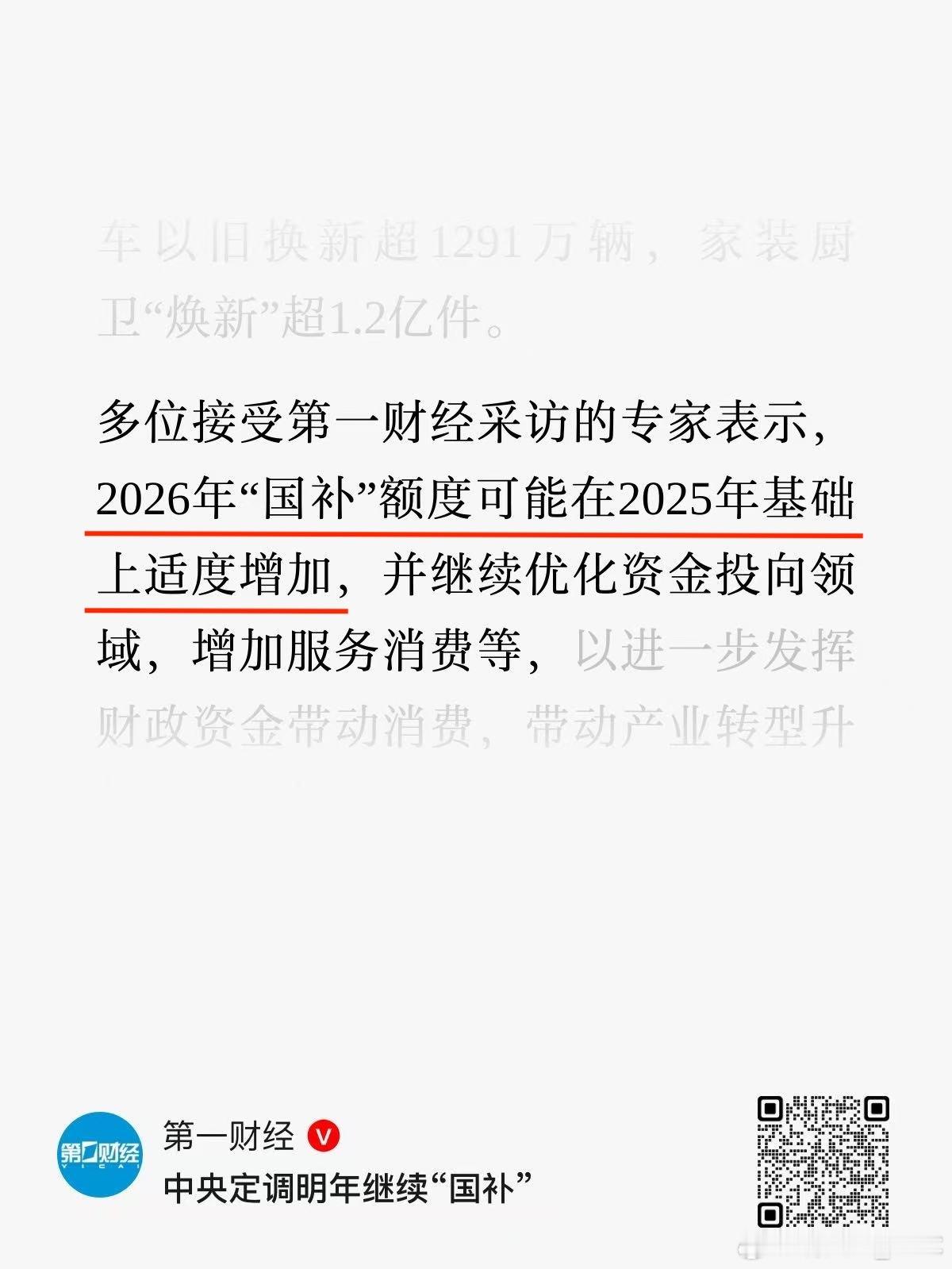 中央定调明年继续国补 明年继续实施国补,已经是确定性的信号。更值得关注的是:2026 年的额度,可能在 2025 年基础上适度上调。那剩下的悬念只有一个:新能源车的置换补贴,会不会同步加码,来对冲补贴退坡呢?