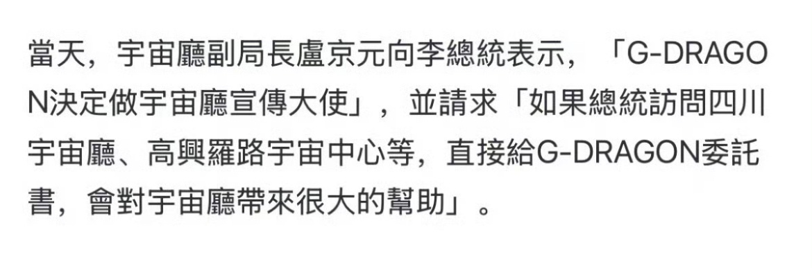 权志龙将担任韩国宇宙厅宣传大使权志龙将担任韩国宇宙厅宣传大使!又要解锁新身份了权志龙韩国宇宙厅宣传大使