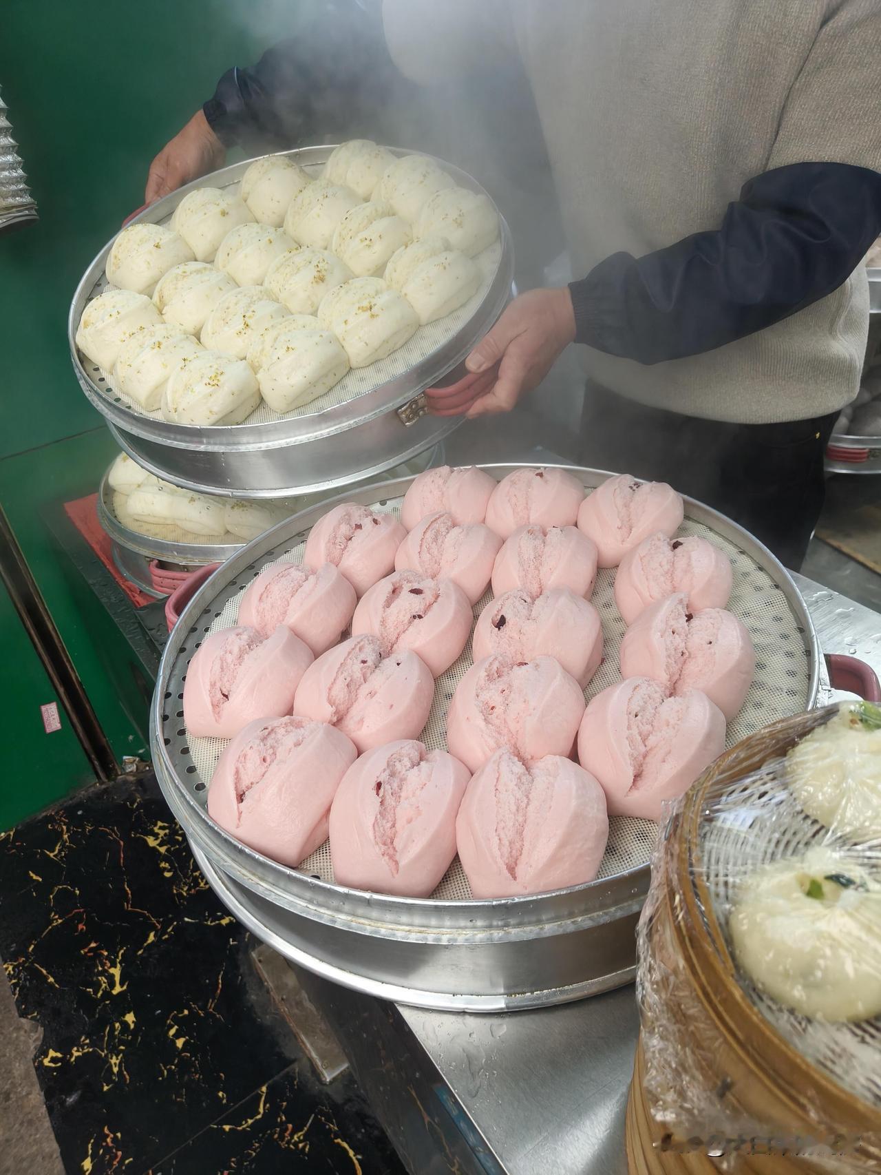 今天的馒头出锅啦,今天的馒头出锅啦 冬天的温度太低咯,刚出锅的馒头烟气好大呀,看起来好有食欲呢! 图片里面有蔓越莓馒头,玫瑰酒酿,桂花酒酿,,香菇青菜小包和芝麻糖包小包 这些馒头和小包各具特色。蔓越莓馒头酸酸甜甜,每一口都能咬到酸甜的蔓越莓干,给平淡的馒头增添了别样的风味。玫瑰酒酿和桂花酒酿散发着浓郁的香气,玫瑰的浪漫与桂花的清甜,仿佛把人带入了花的世界。 香菇青菜小包里,鲜嫩的青菜搭配着鲜香的香菇,一口下去,满满的都是大自然的清新味道。芝麻糖包更是经典中的经典,咬开外皮,香甜的芝麻馅便流了出来,甜而不腻,让人回味无穷。 这么多美味的面食,我可得赶紧尝一尝,再给亲朋好友们也送一些去,让大家都尝尝这冬天里暖乎乎的美味!