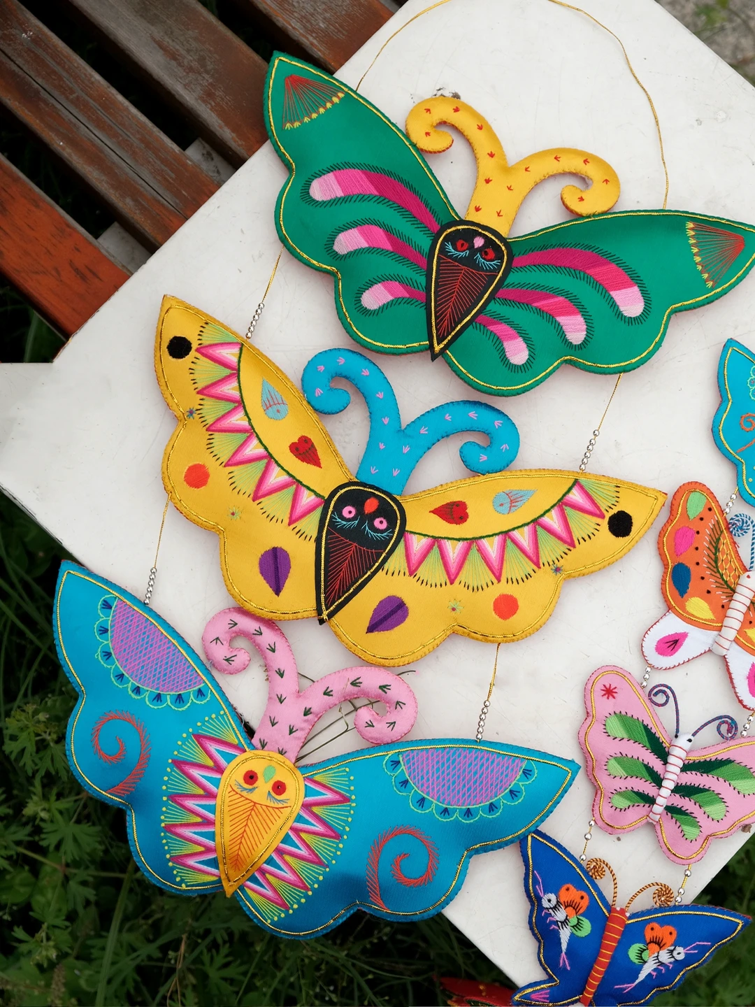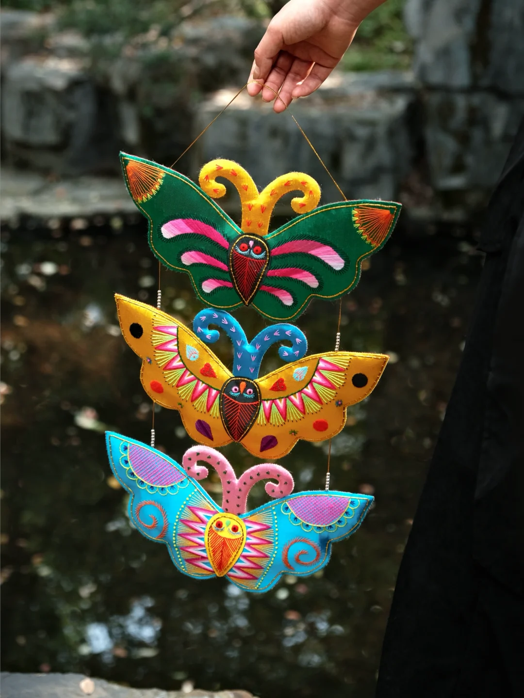 可能在千禧年 这串蝴蝶会被疯抢🙈 这是我们去到陕西时发现的手艺 那时候还落着很厚的灰尘 我们一眼就发现了它的与众不同 没有被快时代同化的审美 每一个蝴蝶都是绣娘们手工制作 来自于她们对生活的理解 我们对配色、款式进行了微改造 更加适合现代家居 三只蝴蝶的款式 寓意着好运与美好的开端 刚好临近2026 让美丽的蝴蝶飞到你家吧!