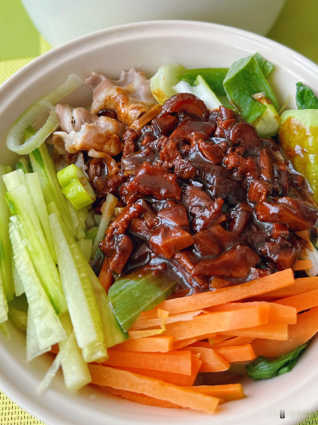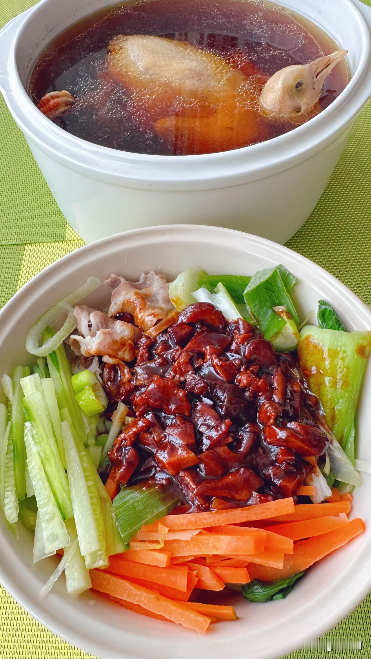 中午,自己动手炖了只老鸽,配上大福建古田的菌汤包,炖了两小时老鸽肉已经是熟透了。 主食是炸酱面。在厦大校园食堂吃了炸酱面后,决定自己动手做炸酱面,单单酱料(干黄酱和甜面酱、米酒代替料酒、醋、白砂糖)和配菜(切丝黄瓜和胡萝卜、香菇、大葱)就准备了2小时,这顿午饭吃得很满足。 厦门美食