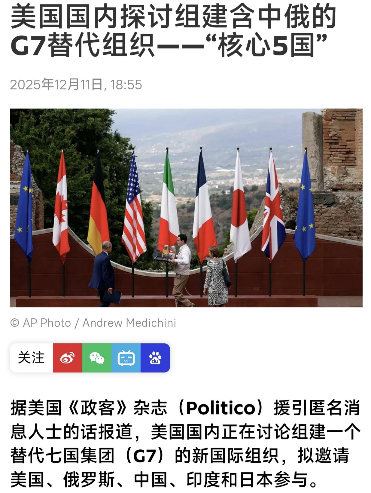 美国国内探讨组建包括中印日俄的核心五国(C5)来取代毫无意义的七国集团(G7),欧洲加拿大是一阵懵啊!这是被抛弃了?过去三年加拿大和欧洲在俄乌战争上既出力又出钱,结果特朗普制定的俄乌和平方案欧洲被彻底抛弃!