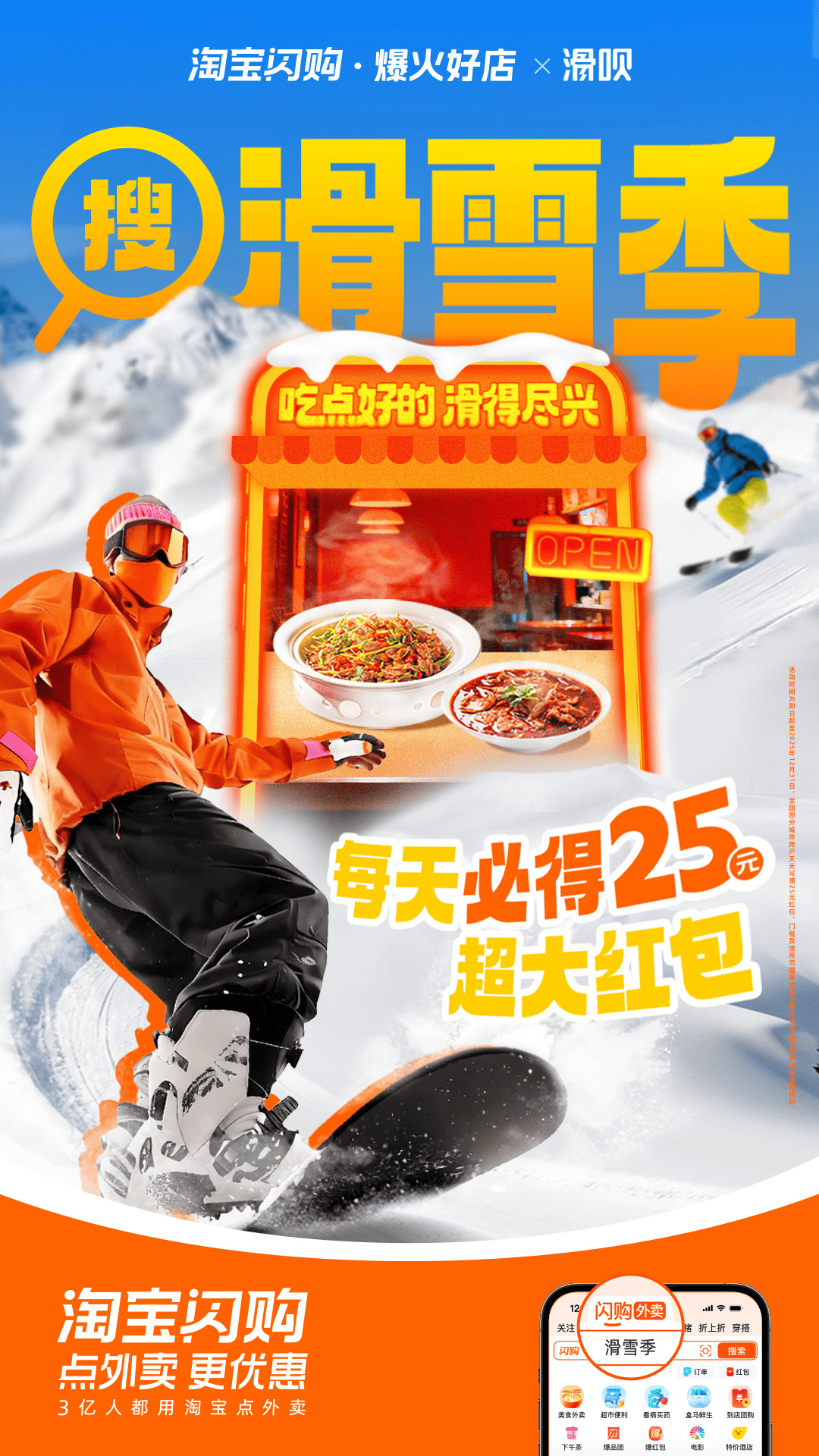 感觉现在没有淘宝闪购送不了的地方了,旅行体验又升级了!以前去滑雪,总觉得吃饭是个大难题。没想到现在滑雪累了动动手指就行,直接上淘宝闪购搜【滑雪季】,各种美食送到面前,还必得25元红包,享加速配送,超时20分钟可免单!这波必须好评!而且12月13日和14日进飞猪联合定制会场,还有机会抽【崇礼太舞住滑套餐】,吃好滑好玩好全安排了!淘宝闪购和滑呗助你吃好滑好 淘宝闪购爆火好店 淘宝闪购把外卖送进雪场
