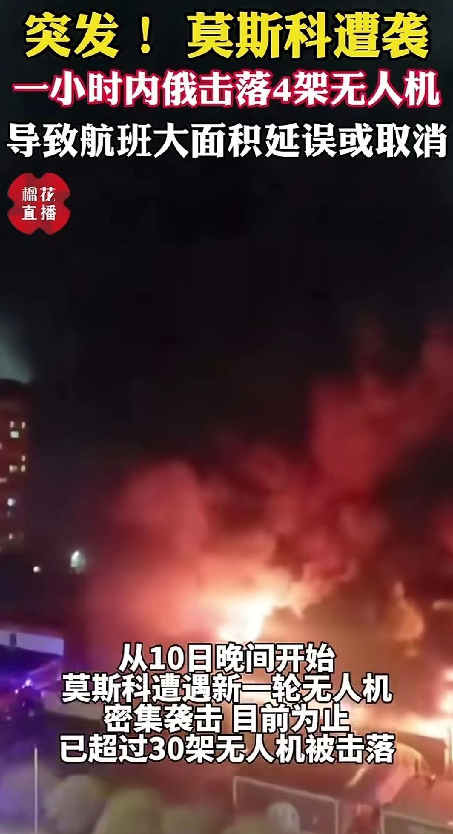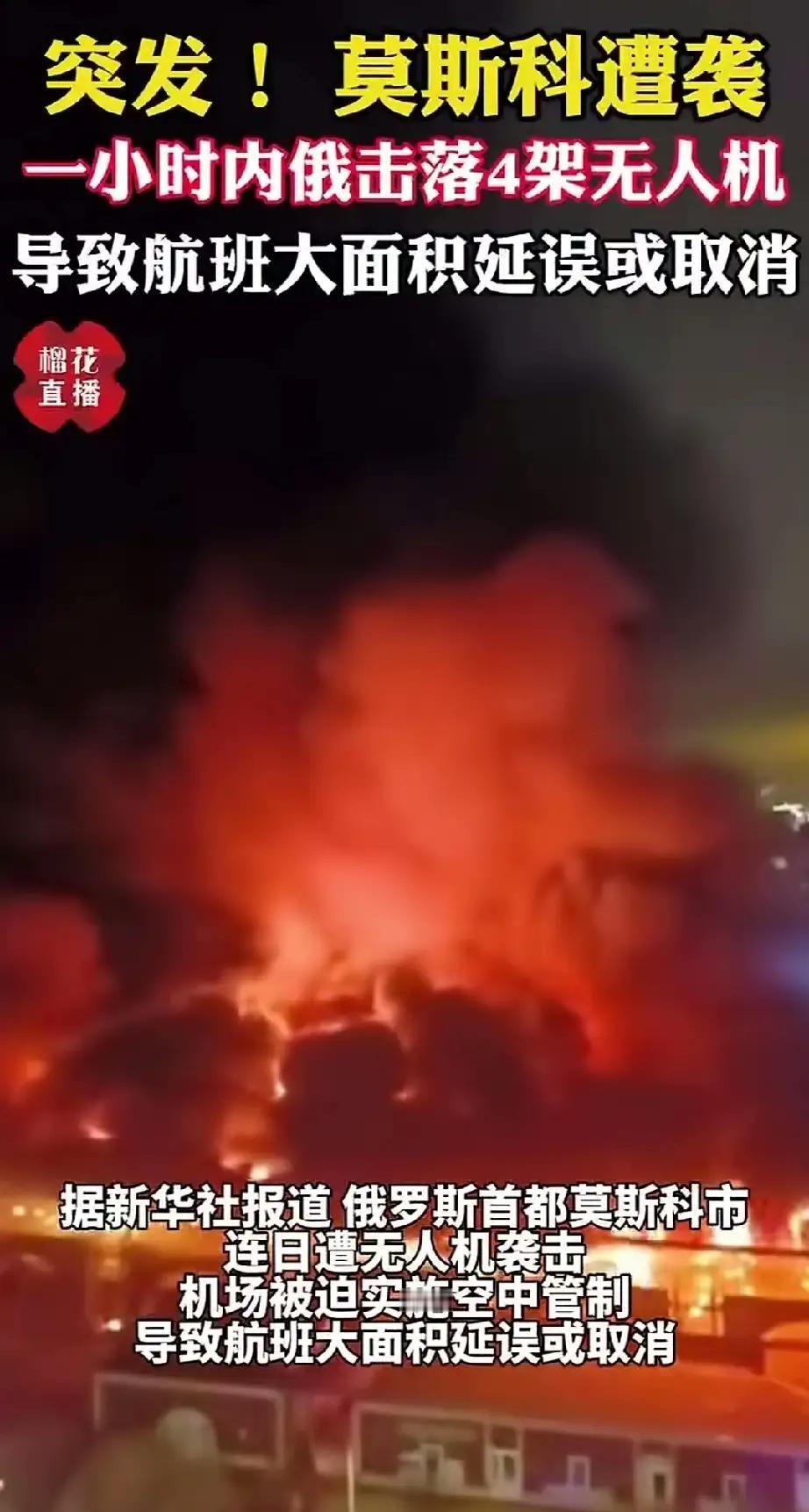 突发消息,俄罗斯莫斯科遭袭击。 莫斯科连日遭无人机袭击,大面积航班取消或延误,乌