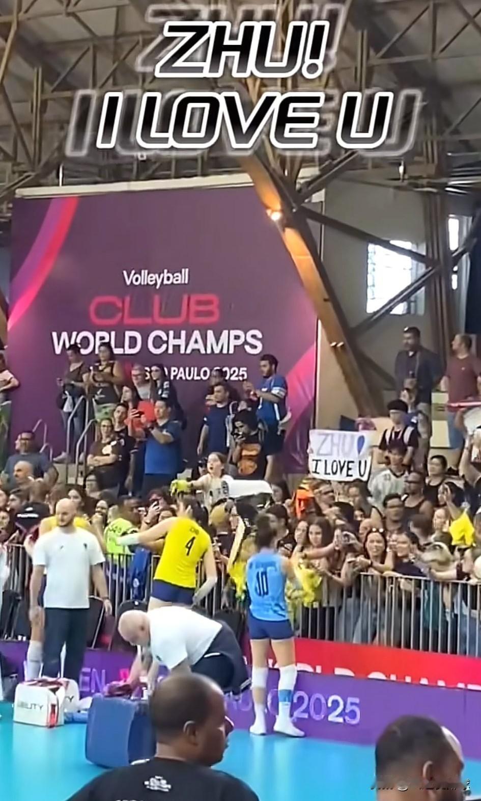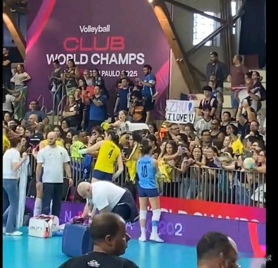 太有意思了!朱婷来到加比的主场,也受到球迷热烈欢迎!似乎看到全运会赛后那一幕幕,不少球队和朱婷合影不停。 小球员的眼里都充满了光! 巴西的粉丝不落俗套还举起标牌,上面写着:ZHU!I love u。 朱婷用实力征服了巴西的球迷,今日凌晨出色的表现也获得巴西当地媒体的盛赞! 一位黄色卷毛粉丝还特意跟中国的婷迷打听:朱婷平常穿多大码的鞋子,然后这位粉丝特意跑到酒店,送给朱婷一双凉拖做礼物! 好可爱的粉丝! 桑巴球迷,喜欢一个人就是这么热情。 好像大家对排球的热爱也是共通的。 期待科内蝉联世俱杯冠军!