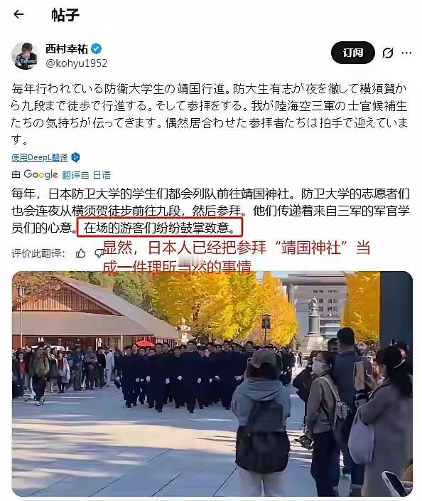小本子的军国主义顽固存续! 当地时间12月11日,日媒报道,日本防卫大学学员按“惯例”集体从横须贺彻夜徒步前往“靖国神社”参拜。 军国主义在日本从来都没消失,防卫大学学员每年都要参拜鬼社显示了军国主义在日本军事体系中从来都没有消失过。