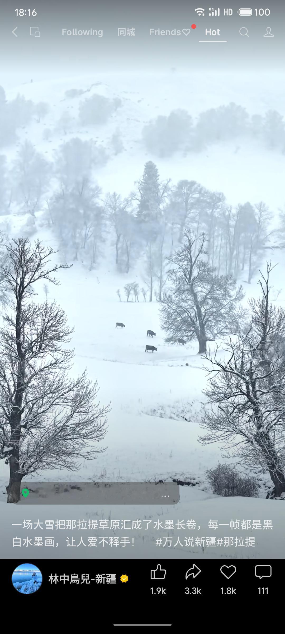 雪后那拉提草原褪去斑斓,化作一幅天然水墨长卷。黑白交织的静谧画面,展现了新疆冬日纯净而磅礴的自然之美。该内容以诗意影像传播地域风情,是“万人说新疆”系列中一次成功的视觉叙事,有效提升了景区文化吸引力。