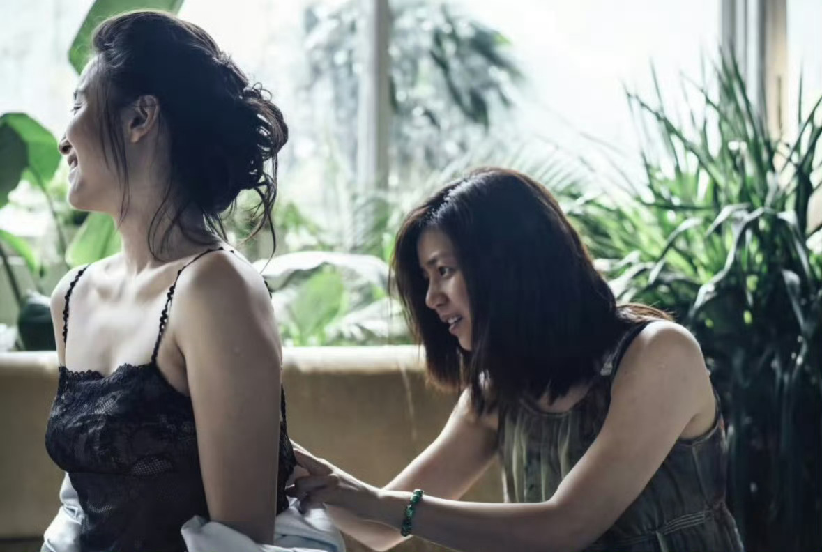 高圆圆旁边这是谁啊??身材好好啊,就是这个裙子的布料……