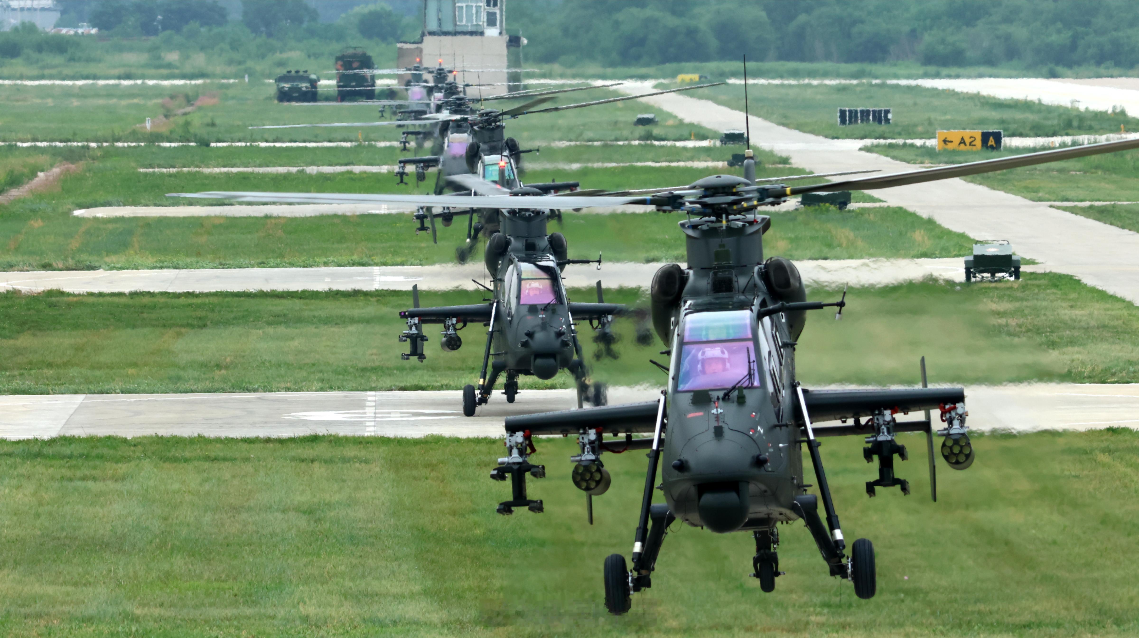 【陆军三型直升机同框飞行大片】近日,陆军第82集团军某旅直升机分队展开高强度编队