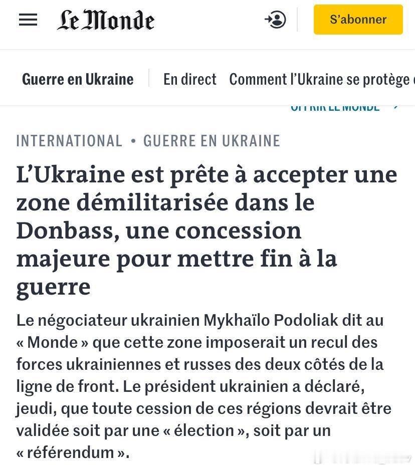 法国媒体:乌克兰准备接受在顿巴斯地区设立非军事区,这是结束战争的一项重大让步。