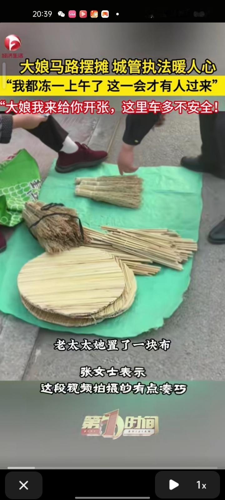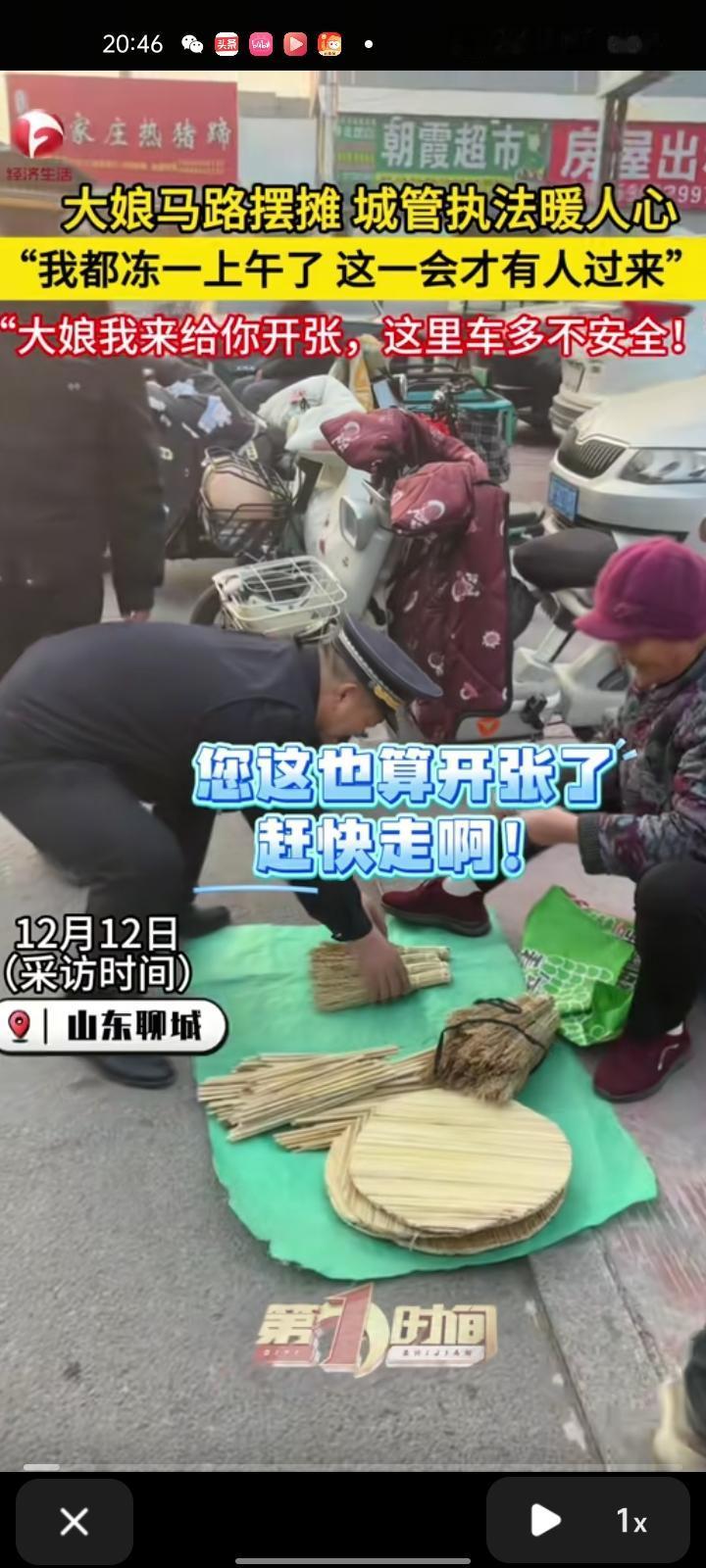 12月10日,山东聊城。女子晒视频称,大娘在路上摆摊卖手工制作的厨房用具,城管这波操作暖人心,说道:“大娘,这就开张了,咱收了吧,路上车多,我送您到路口”。她表示,当天这位城管在执法时,全程面带微笑。原来暖意从来不是什么大事,是城管大哥没说一句重话,悄悄把剩下的小炊帚都收了手