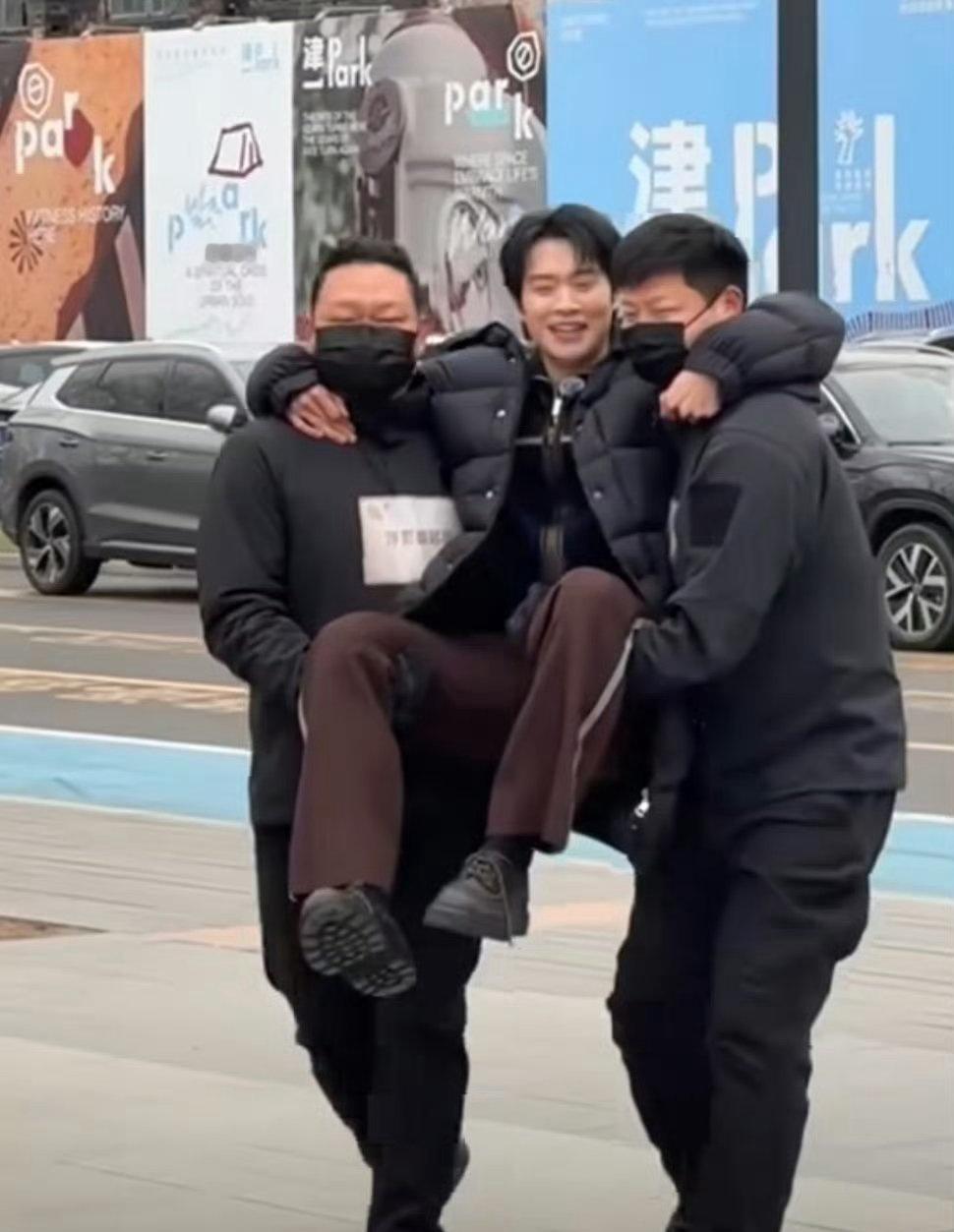 魏大勋周五晚高疯的路透太欢乐啦!被两个人扛着的大勋花,像只软萌的小猫咪,是大家眼中的宝宝无疑了。这画面简直是我的快乐源泉!