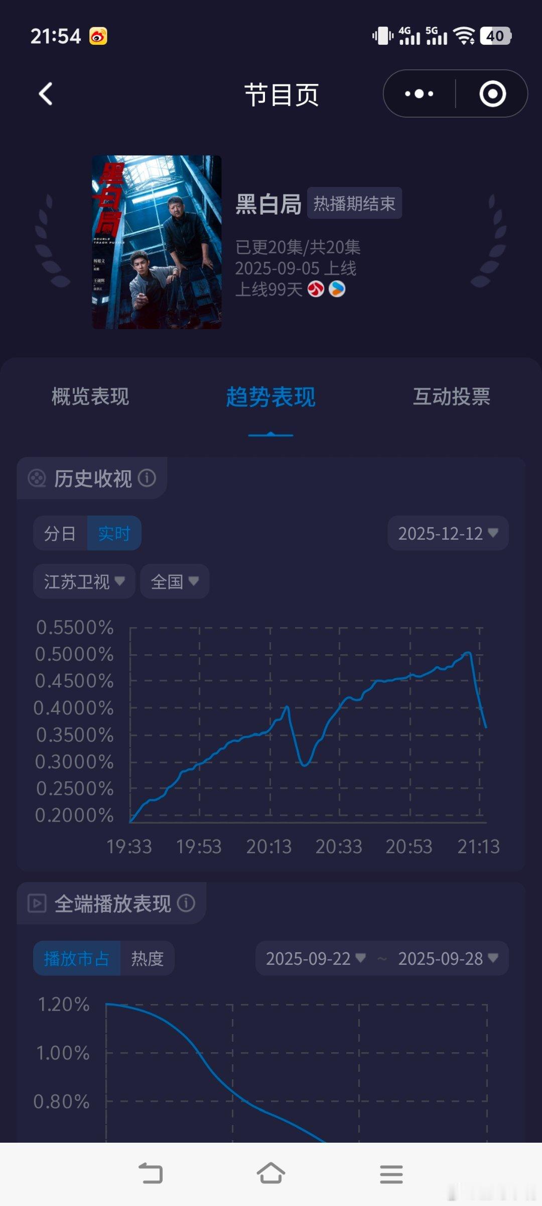杨旭文黑白局 周五收视大涨!酷云峰值0.5035成为今年江苏卫视黄金档剧场最高峰值!今晚双集平均0.3669,cvb估值0.3669×0.75=0.275,好强!