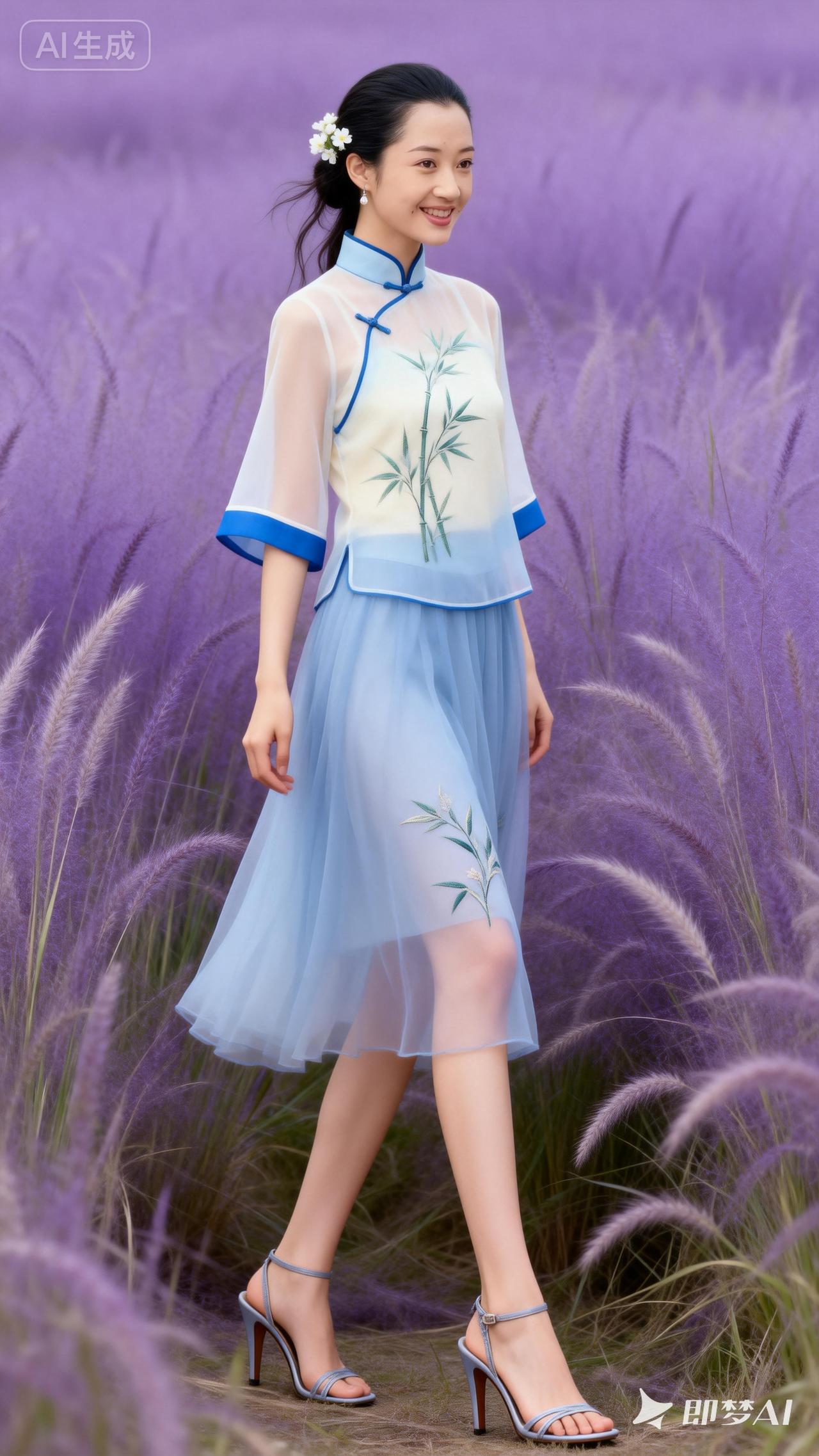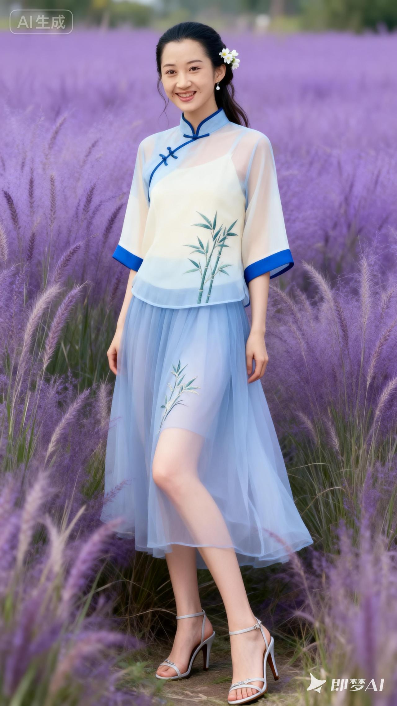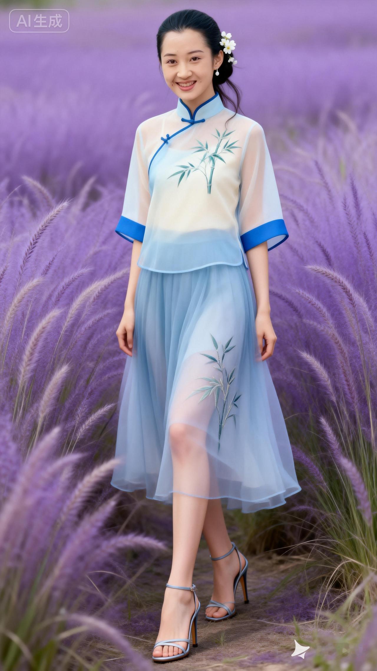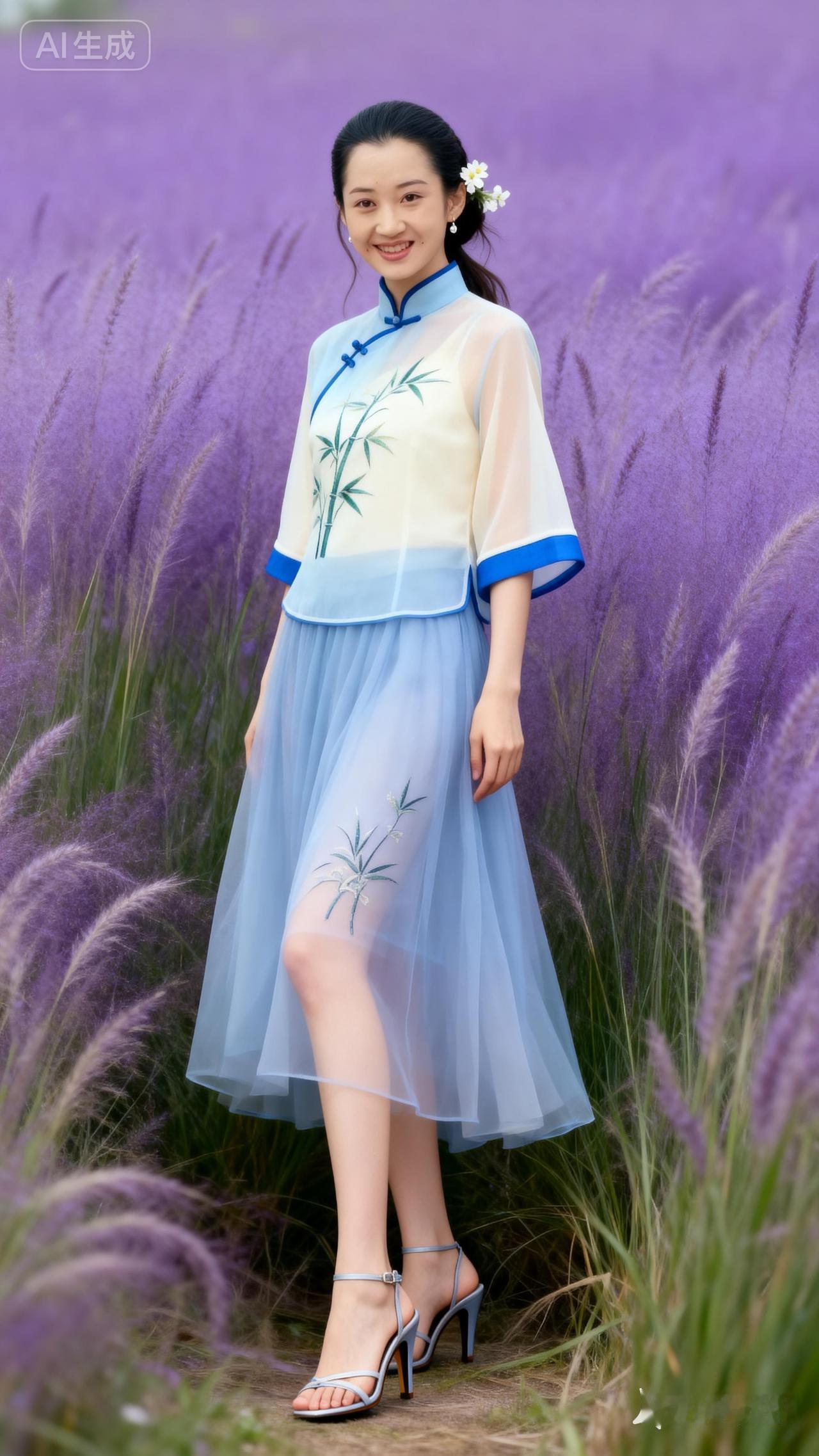 梦幻紫色花海中的东方美人,清新脱俗,韵味十足。