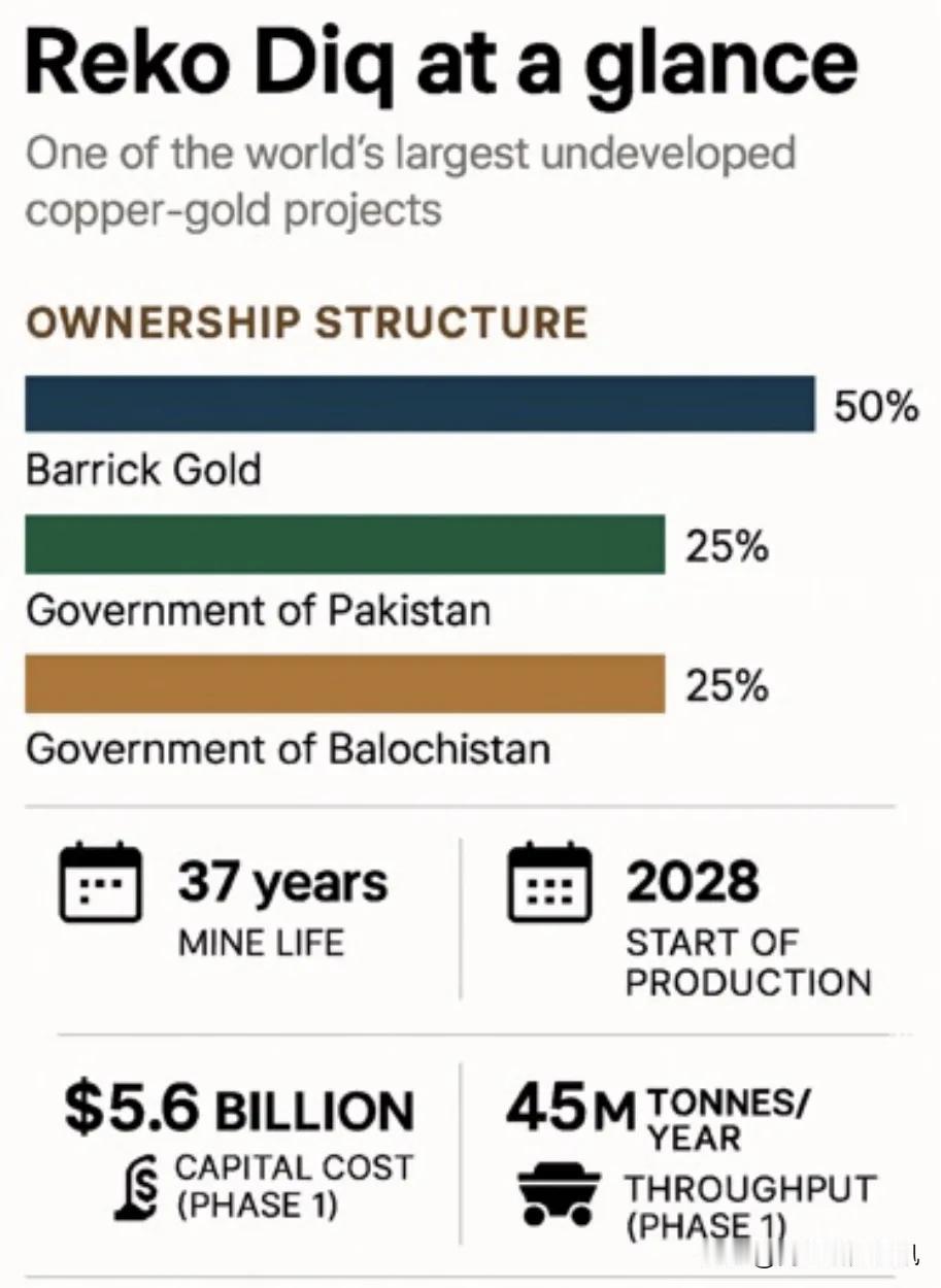 阿拉伯新闻网12月10日报道,美宣布向巴基斯坦雷科迪克铜金矿提供12.5亿美元($1.25 billion)融资,以推动关键矿产开发。这是美在巴矿业领域规模最大的融资之一,有望带动高达20亿美元($2 billion)的美采矿设备与服务出口,将为美创造约6000个就业岗位,为巴创造7500个岗位。据悉,该矿是全球最大的未开发铜金矿之一,位于巴俾路支省,项目总投资70亿美元($7 billion),对巴扩大出口、吸引外资、开发关键矿产有重要战略意义。项目一阶段每年产铜约20万吨,扩建后产量有望翻倍,在37年开采期内预计产生超700亿美元($70 billion)自由现金流。巴财长奥朗则布(Muhammad Aurangzeb)表示,该项目规模35亿美元($3.5 billion)的整体债务融资方案即将完成,投产后首年出口潜力可达28亿美元($2.8 billion),约占巴当前出口总额的10%。然而,分析指出,项目仍面临俾路支省严峻安全形势及铁路基础设施升级等挑战。