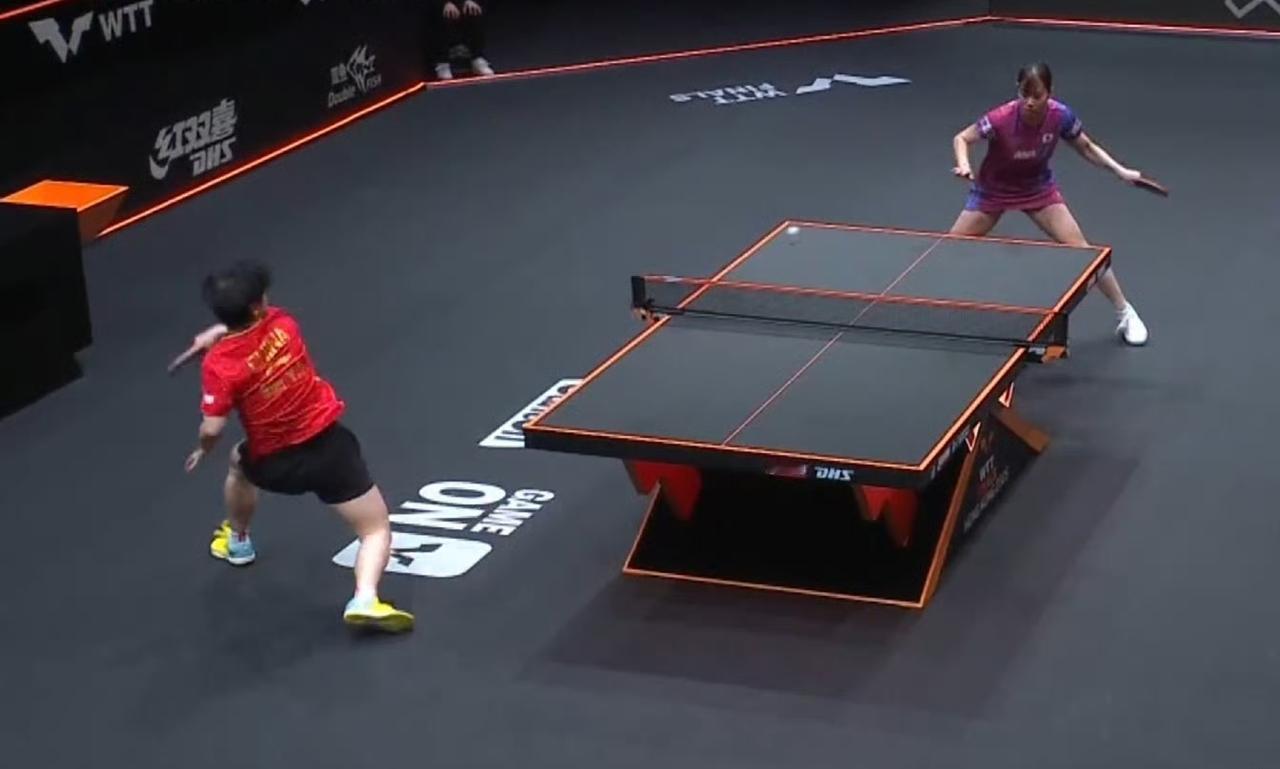 等到晚上10点,才等来了孙颖莎的单打比赛。不过,好饭不怕晚,孙颖莎给球迷们继续烹制着视觉大餐,与长崎美柚展开精彩的比拼。 虽然第一局长崎美柚一度拿到局点,不过还是被孙颖莎给逆转;其余三局比赛完全没有悬念,孙颖莎牢牢把控着节奏,没有给对手任何机会。只用了半小时,比赛就分出胜负,具体比分:4-0(12-10/11-6/11-6/11-1) 有意思的是,第四局孙颖莎竟然使用了挑战,挑战对手抛球角度,并且获得成功,这也引得长崎美柚捂嘴偷笑,大概有些不敢相信吧。
