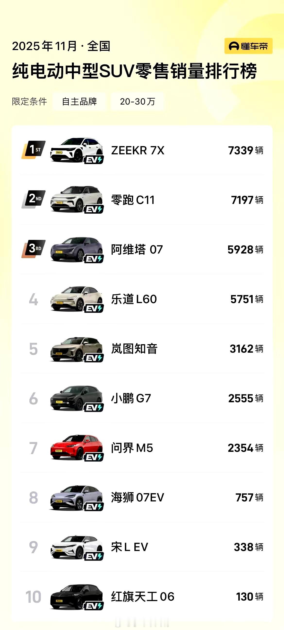 11月焕新极氪7X斩获20万级中型纯电SUV冠军市场销量给出的答案就是对焕新极氪7X 的认可全家都满意的豪华SUV
