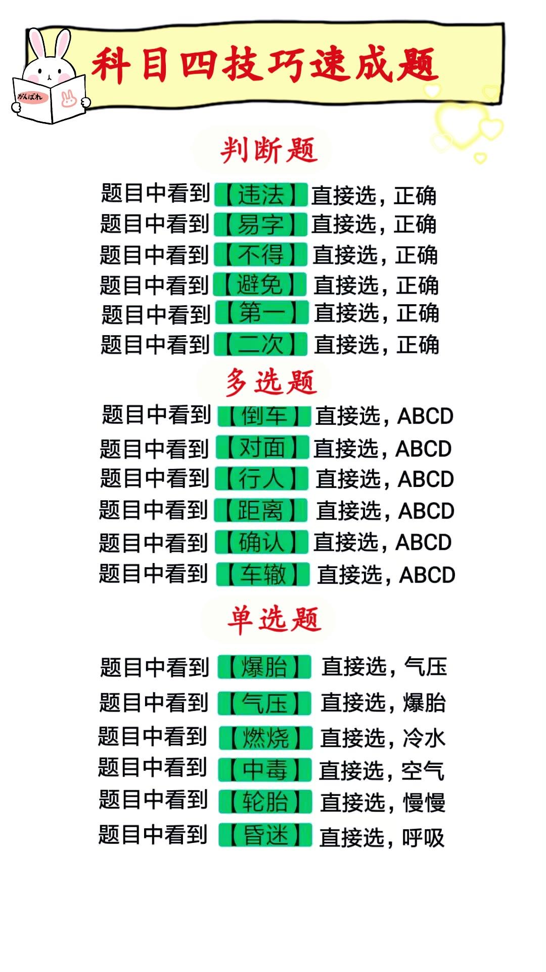逢考必过 科一科四速成答题技巧 驾校学车 科目一科目四理论 考驾照