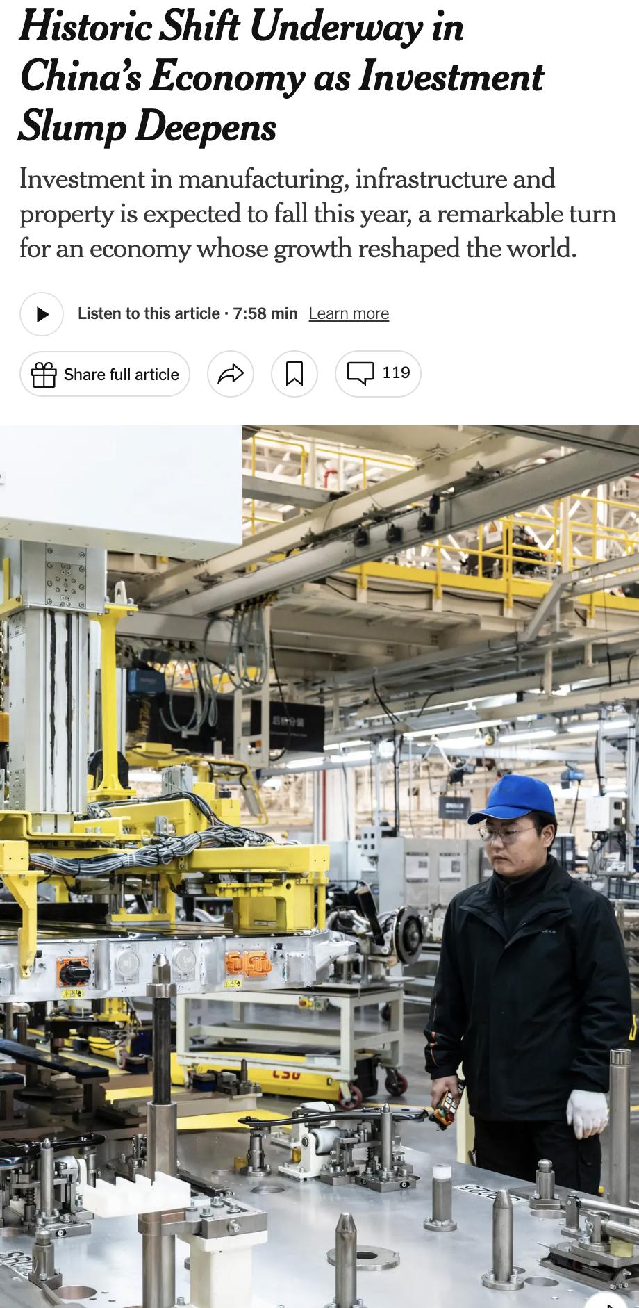 美媒:过去30多年,中国经济持续高速扩张,基建、制造业和房地产投资几乎年年增长,是推动中国成为全球经济强国的核心动力。 然而 2025 年将迎来罕见变化——各类固定资产投资预计将首次自上世纪80年代末以来出现整体下降,意味着中国经济进入更加保守和谨慎的新阶段。