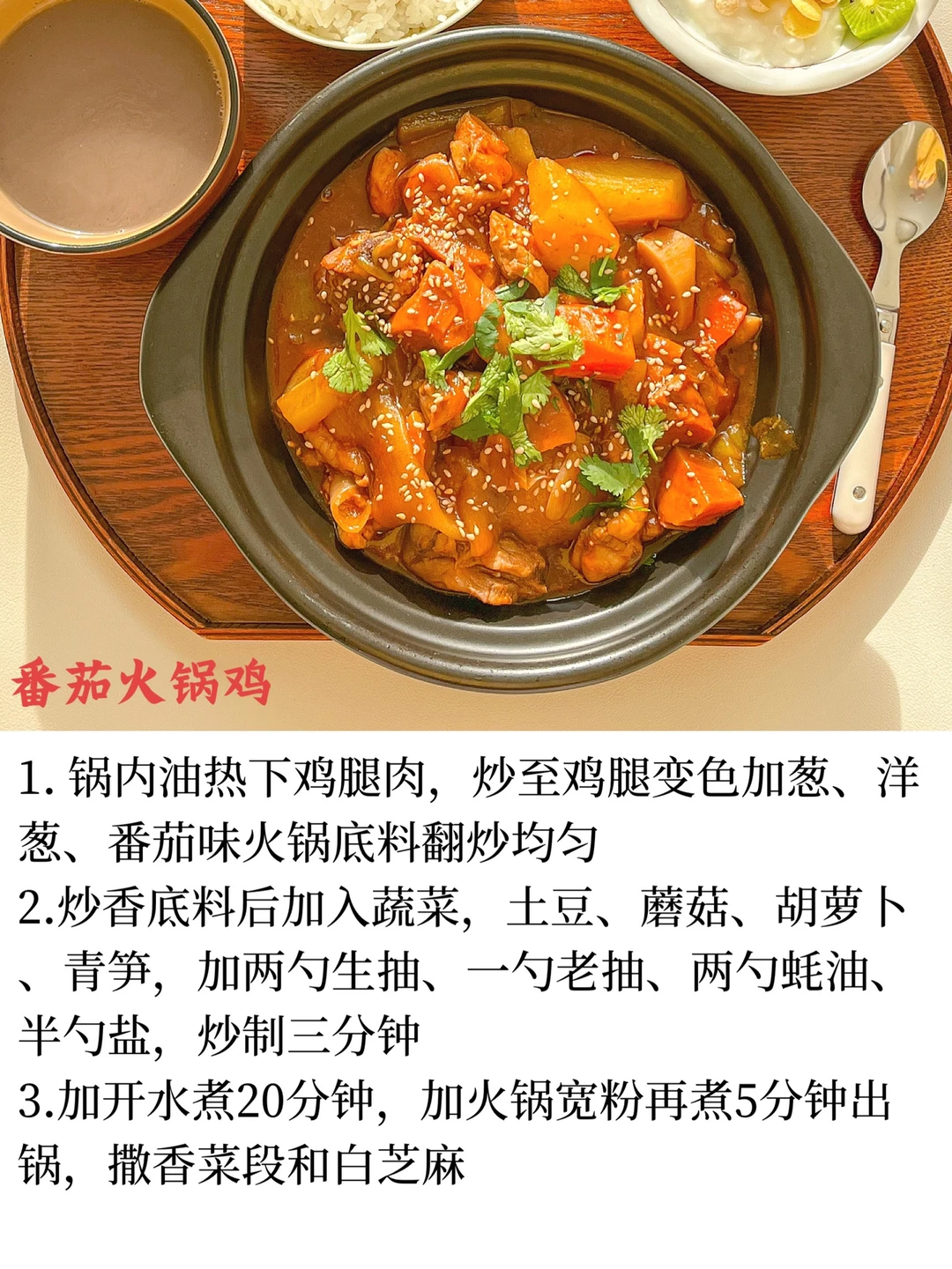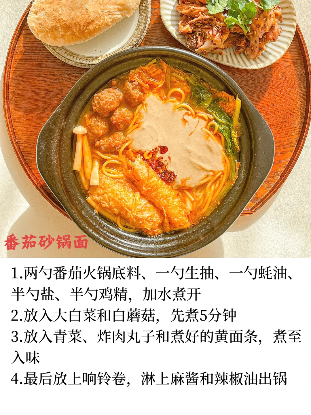 听说有人不知道一个人吃什么? 我帮你整理好了四款美味砂锅菜~ 跟我一起吃热呼呼的美食吧 具体的教程可以翻翻我之前的笔记 ❤番茄砂锅面 ️🧡砂锅焗海鲈鱼 💛奶酪鱿鱼年糕锅 💚番茄火锅鸡