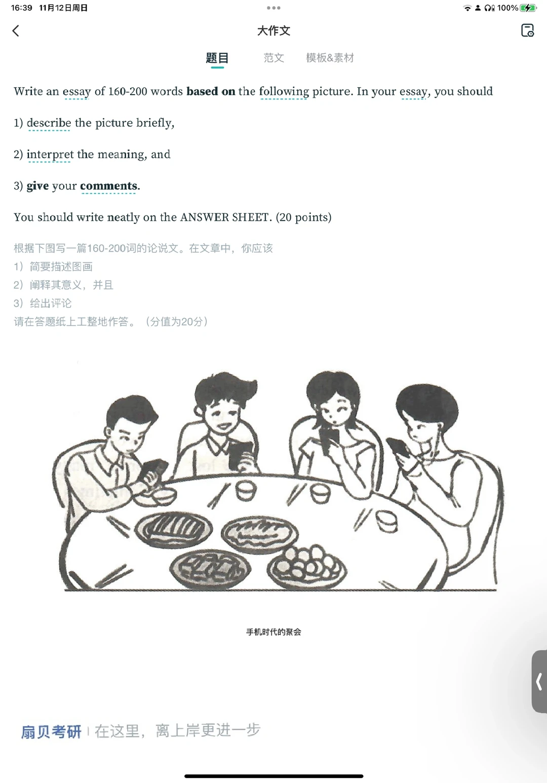 2⃣️(动作描述)他们没有互相聊天,享受美食,而是全神贯注地在手机上,一些人对他们正在观看的内容发笑,另一些人则被他们手中的虛拟世界迷住了。