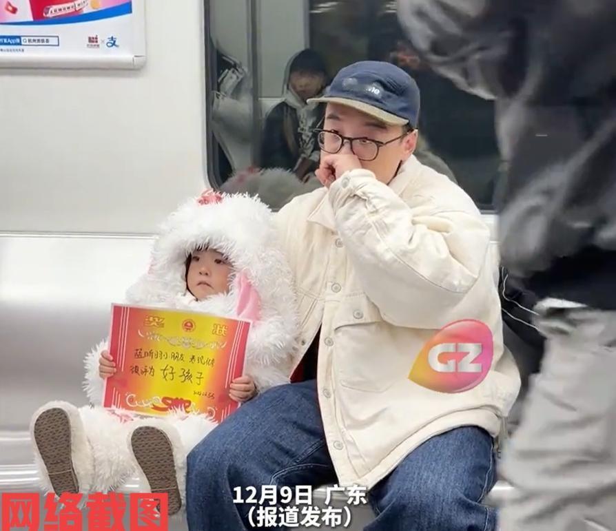 广东潮汕有男子接幼儿园女儿放学。 这次男子女儿在幼儿园学习里表现优异成为老师眼里的好孩子,老师表扬之后还颁发一张奖状,以示鼓励,男子也是满足赞许,看到女儿满脸高兴竟然手持奖状不放,一路下来哪怕乘坐地铁还是如此,似乎让所有人看明白她是最优秀的,女儿的行为爸爸有些难为情,心里有了尴尬之意。 当每个人经过小女孩面前时,都会注视一眼她手里那张“优秀好孩子奖”的奖状,会为女孩露出微笑,爸爸提醒让女儿收一收,女儿还满脸不高兴,爸爸更是为难女儿的举止,让一旁同行的众人是笑意十足。 这里只是一个孩子的心里高兴,她需要把自己真实的意图昭告所有人,为她羡慕,看看自己是好孩子,这是老师给予的奖励,货真价实,只是在大人的思维里要低调一点,不要过于张扬,毕竟还有需要进步的空间,此刻小女孩却用直白的方式大胆告诉所有人,自己心里的高兴,毫无隐藏。 这里每个人获得荣誉时都是如此想表现自己的高兴,只是用过的方式各有不同但意义是相同的,这里爸爸心里肯定高兴,但孩子表现的方式让他有点不赞成甚至于有抵触,这只是爸爸的想法。