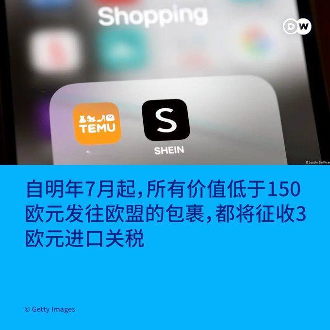 欧盟对小包裹征收3欧元关税,明年生效 自明年7月起,所有价值低于150欧元发往欧盟的包裹,都将征收3欧元进口关税。本周五,欧盟财长达成一致。 法国经济部长莱斯屈尔表示,这对欧盟来说是一大成功。 2024年,约有价值46亿欧元的单个价值低于150欧元的包裹抵达欧盟市场。其中,91%来自中国。 早在去年11月,欧盟各国财长已经在原则上达成一致,取消小包裹免税的规定,并“尽快”予以落实。最初的计划是2028年才会实施。但特别是在法国的压力下,自明年起就将实施如今达成的临时方案。 对于小包裹无法按通常的关税规定征收,因为对海关部门来说负担过重。通常的规定下,税率因产品种类、细分类以及进口国各有不同。 如今的新规则对每件价值150欧元的包裹都征收3欧元关税。如果一个包裹内有多件同一产品,也仍征收3欧元关税。但如果有多种产品,则每种额外征收3欧元。