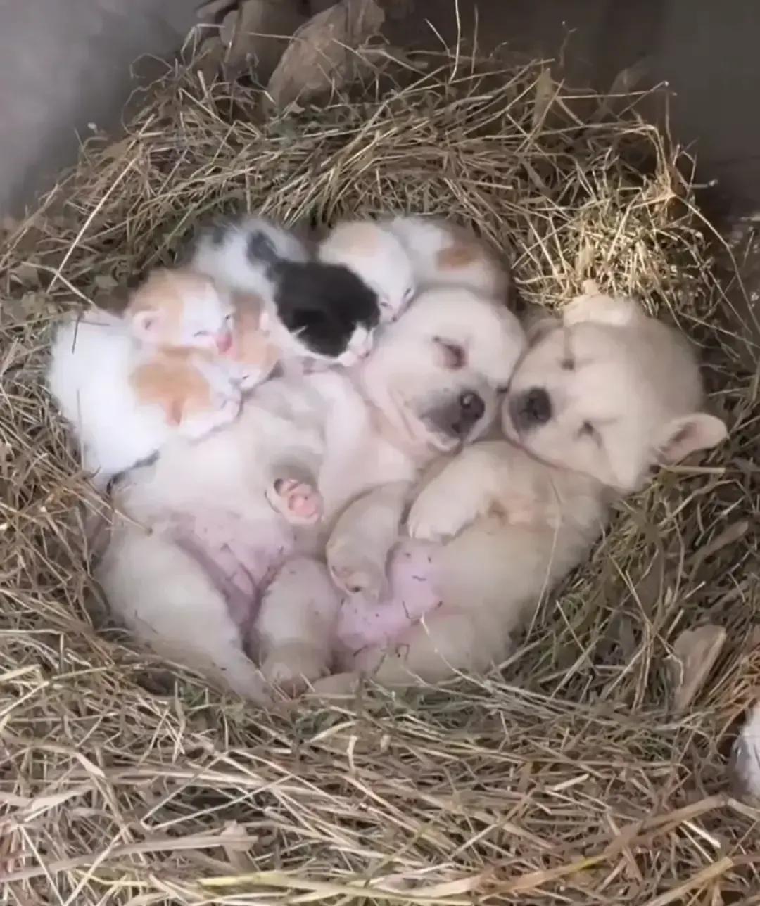 一只流浪花猫在郊区废弃水泥管里带娃,被晨练的人拍到身边多了只棕黄小狗,个头比自家三崽还小,正叼着猫奶头猛吸。 母猫没炸毛,反而把狗娃圈进怀里一起晒太阳。 视频传开,网友全在刷跨物种母爱。 动保志愿者蹲点三天确认不是摆拍,干脆把一家五口打包送进救助站。 体检打针全绿灯,现在四小只还挤一个窝,狗崽抢奶最凶,猫妈照舔不误。 有人担心狗长大认不出亲妈,我看多余,它先学会的是猫尾巴信号,摇尾巴等于挑衅,估计以后见同类先哈气。 动物不讲血缘,只认谁给奶谁给暖。 人反而把亲情算得门儿清,真该脸红。