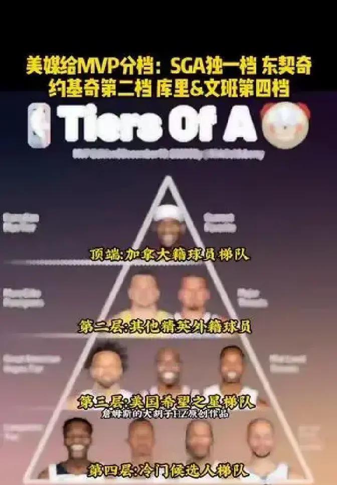 NBA的S级巨星,美国人快够不着了。 你看这赛季的全明星首发,五个位置被国际球员占了。 历史上第一次,字母哥、东契奇、约基奇、恩比德、亚历山大——这五个名字压过了美国本土的四个。 翻看MVP榜更刺眼。 唯一的S级,是加拿大的亚历山大。 排在他后面的第二档,是斯洛文尼亚的东契奇和塞尔维亚的约基奇。 美国人,已经挤不进前二档。 这三位不是在刷数据,是在改朝换代。 亚历山大用场均31分,把雷霆稳在西部前三。 东契奇每晚撕下接近34分9篮板9助攻的准三双。 约基奇在丹佛,闲庭信步间拿走25分12篮板9助攻的统治级成绩单。 背后的数字是:联盟四分之一的球员来自海外,40个不同的国家。 各项技术统计榜前五,常被国际面孔占去三席以上。 二十年前,你来NBA是朝圣。 今天,你是来称王。 NBA不再只是美国梦的橱窗,它成了地球村最硬的擂台。