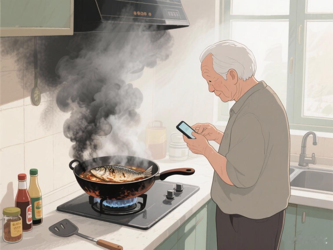 手机刷走鱼,险些酿大祸!朋友家老伴炖鱼时,转身进屋刷视频,结果忘得一干二净。直到黑烟滚滚,才慌忙关火,锅已烧干。这已不是头一回!老年记性差,做饭千万不能离人。水火无情,一次大意,可能悔恨终生。家中有老人下厨的,务必多提醒:守好灶台,放下手机,安全第一!