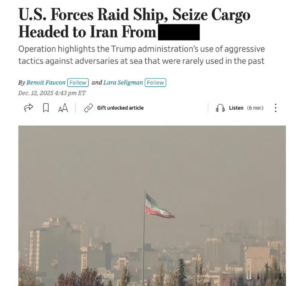 美军拦截印度洋上航行的船只,扣押了船上运往伊朗的货物。 美国官员称,上个月,一支美国特种作战小组在印度洋登上了一艘船,并查获了从“其他国家”运往伊朗的军事相关物品。这是一次罕见的海上拦截行动,旨在阻止德黑兰重建其军事武库。 据官员称,事发时这艘船位于斯里兰卡海岸数百英里外,执法人员登船并没收了货物,之后才放行。官员和另一位知情人士透露,美国一直在追踪这批货物。
