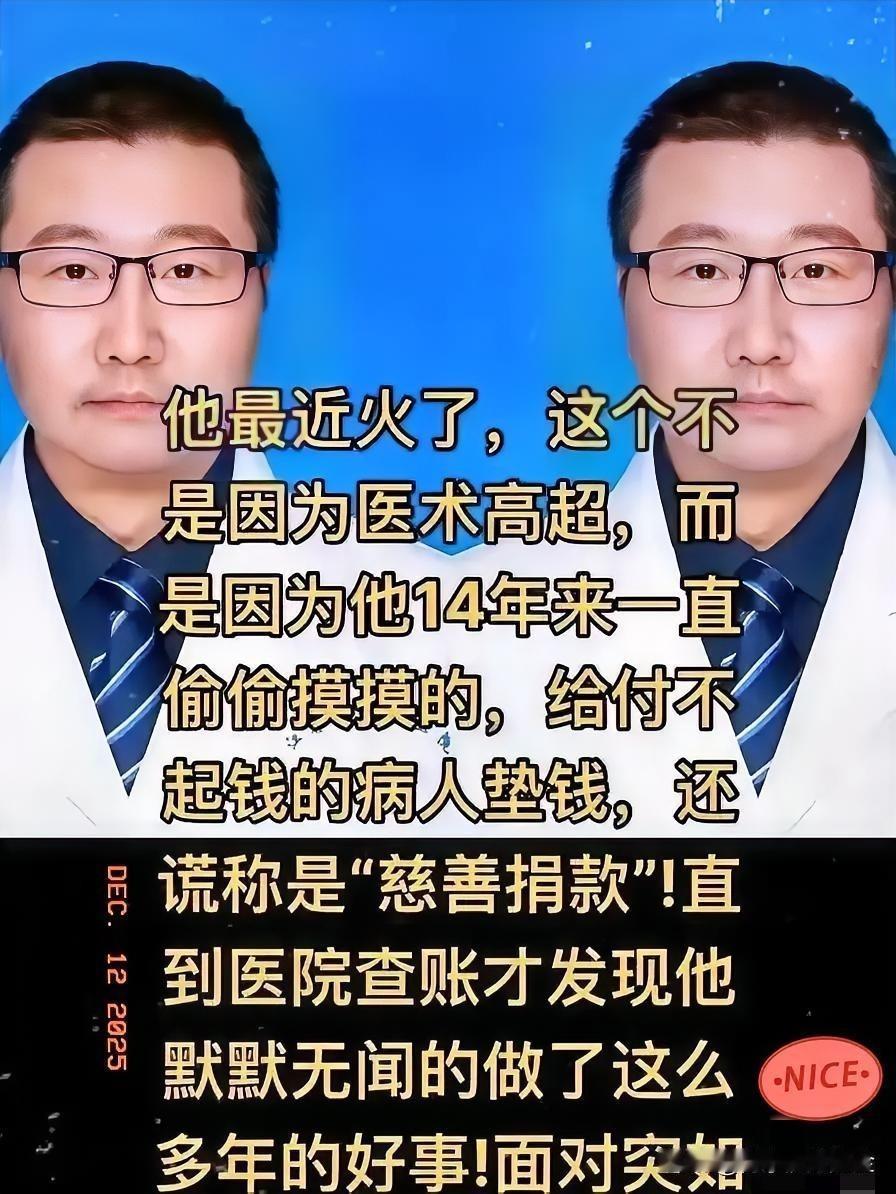 审计组本是来查问题的, 结果一拉账单,倒把南京肿瘤医院 席玮医生的“秘密”给扒了出来,把见惯风浪 的会计都看哭了。14年偷偷给贫困患者垫医药费,工资、年终奖甚至孩子的压岁钱都用上,自己却过得抠抠搜搜,皮带裂了缝、女儿书包缠胶带也不换。 他最聪明的地方,是用“慈善补贴”的谎言护住了患者的尊严,这种不声不响的善良,比任何高调捐赠都更戳人。其实真正的善意从不是作秀,而是把别人的难处放在心上,悄悄搭把手却不求回报。 我们总抱怨世风日下,可席玮用84万证明,善良从不需要呐喊。要是每个人都肯多一份共情,少一点算计,是不是就不用再靠“席玮式转账”兜底?你身边有没有这样默默行善的普通人?