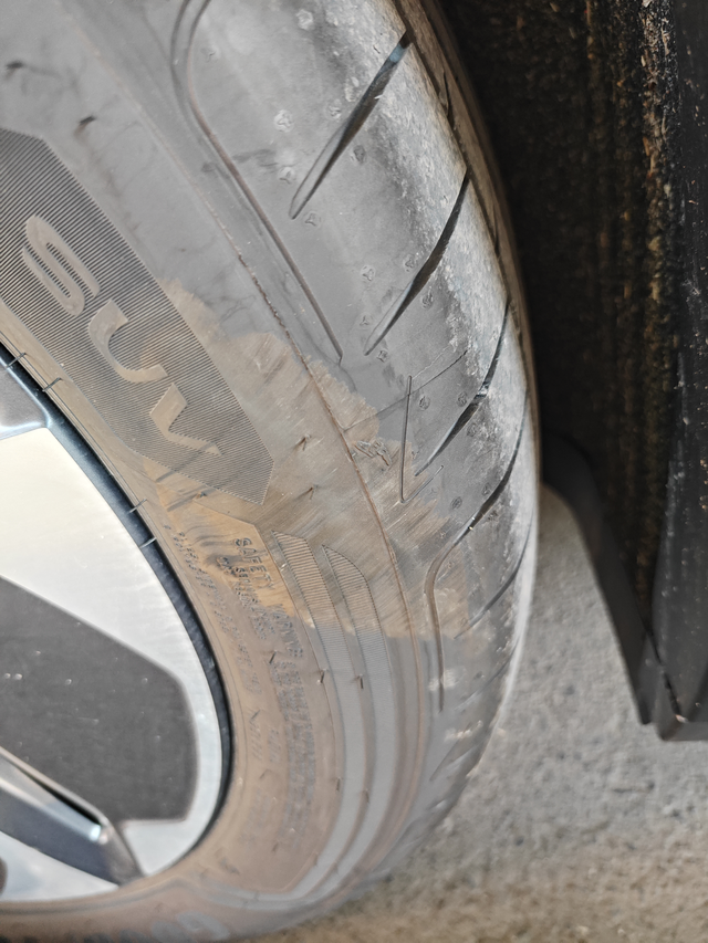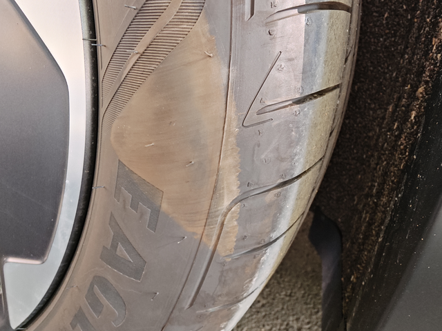求助各位车友帮忙看下轮胎剐蹭需要怎么处 同一车位,侧方停车,蹭马路牙子3次:晚上一次,早上2次,这轮胎需要处理吗 ps:下次nomi识别不出来的车位我是坚决不停了