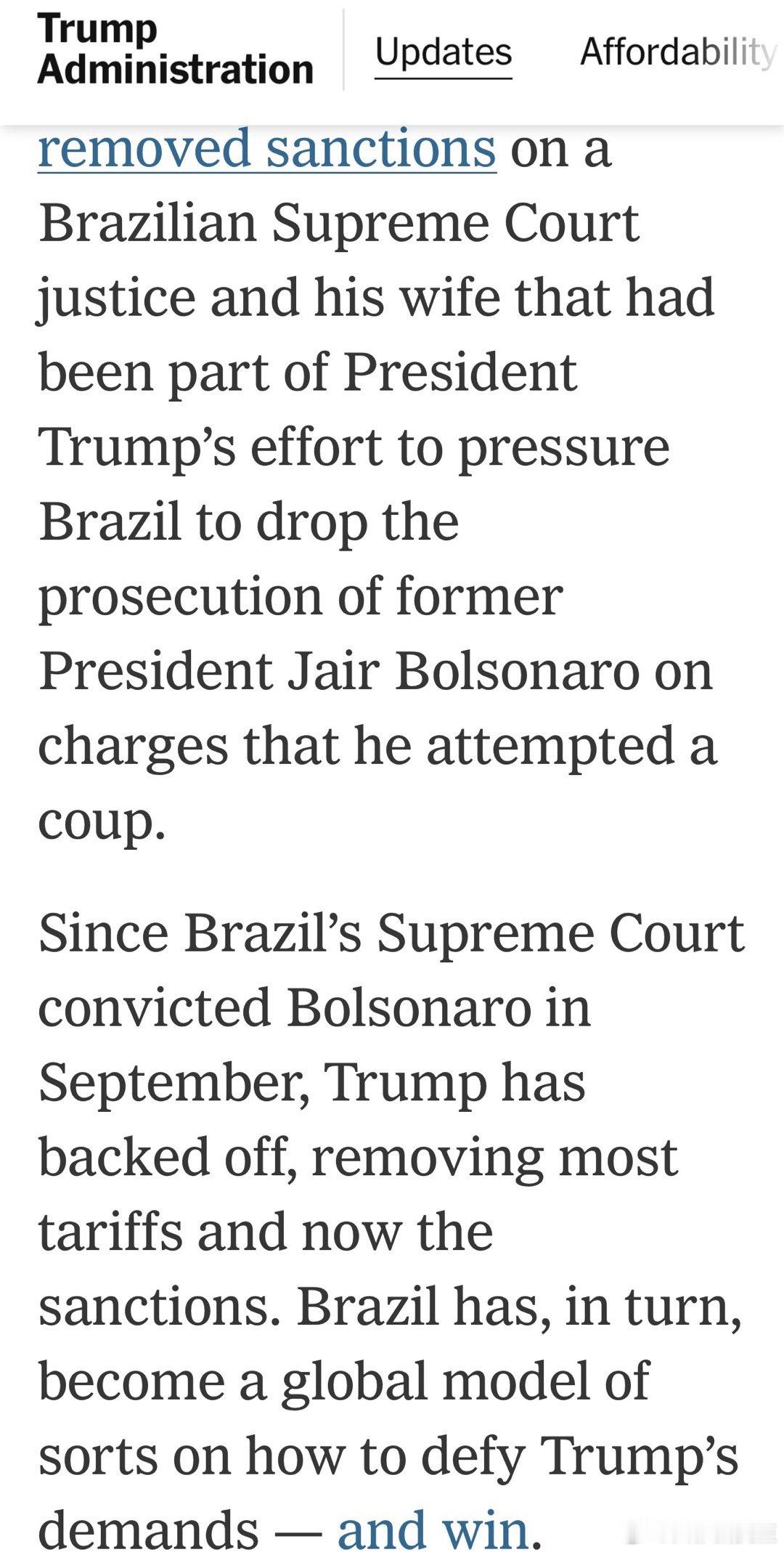 美国取消对巴西高法法官及其妻子的制裁最初制裁,是施压“不要查前总统”,现在已经定罪、判刑额外重压力攻势不但彻底失败、而且适得其反