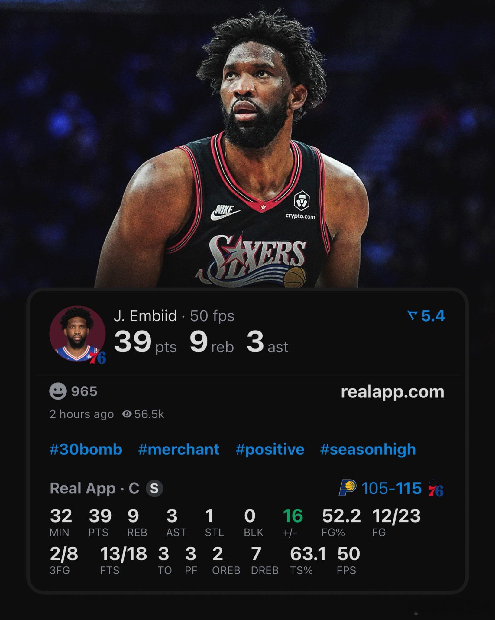 真是不容易,恩比德在对阵步行者的比赛中,拿下了39分9篮板3助攻1抢断。大帝终于是找回点当年的感觉了,真是不容易。熟悉的恩比德回来了