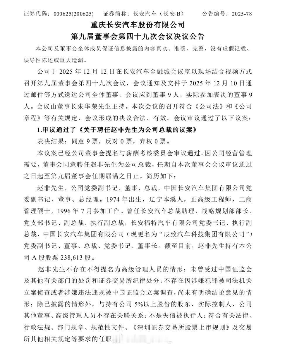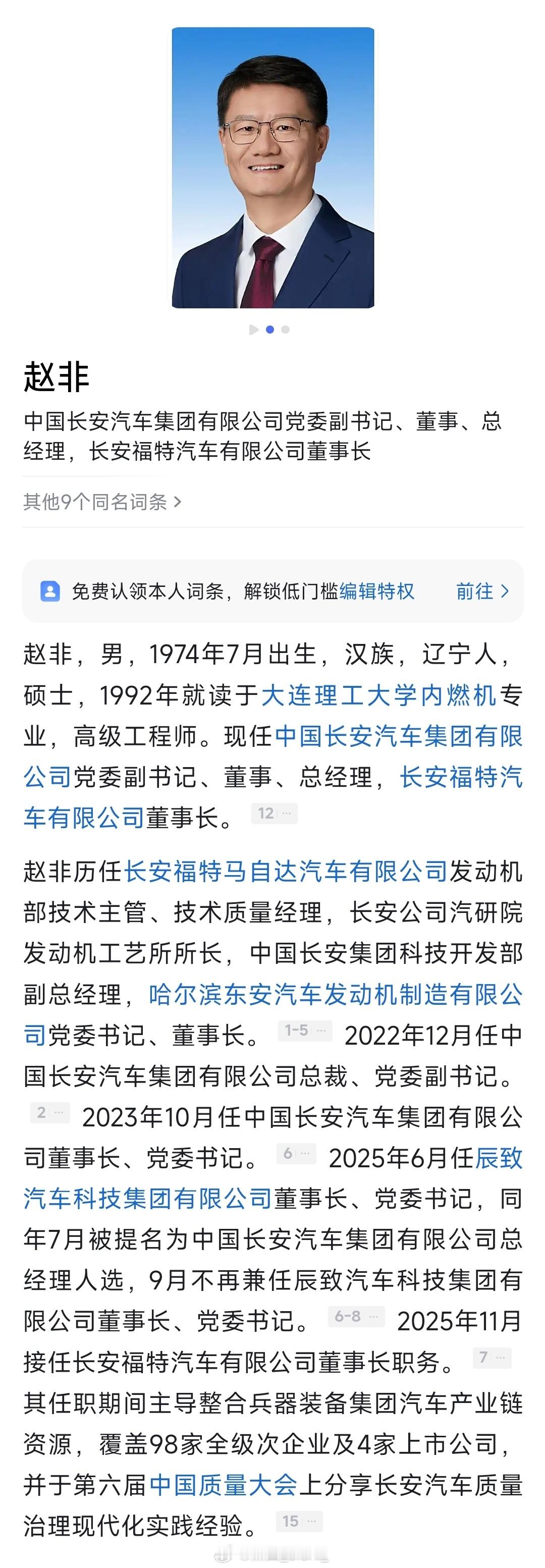 赵非任重庆长安汽车股份有限公司总裁。