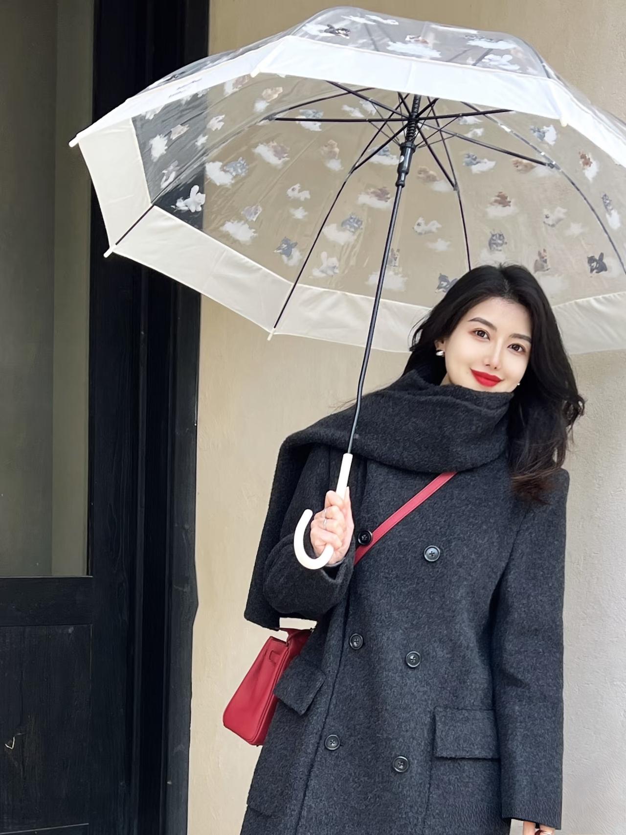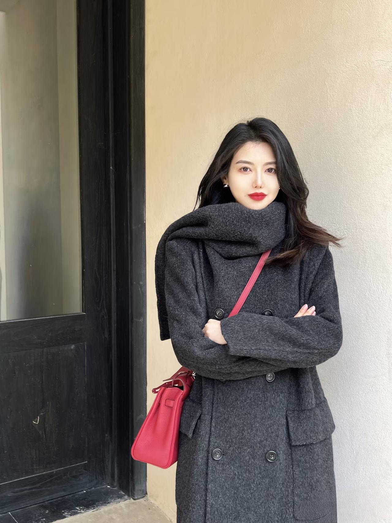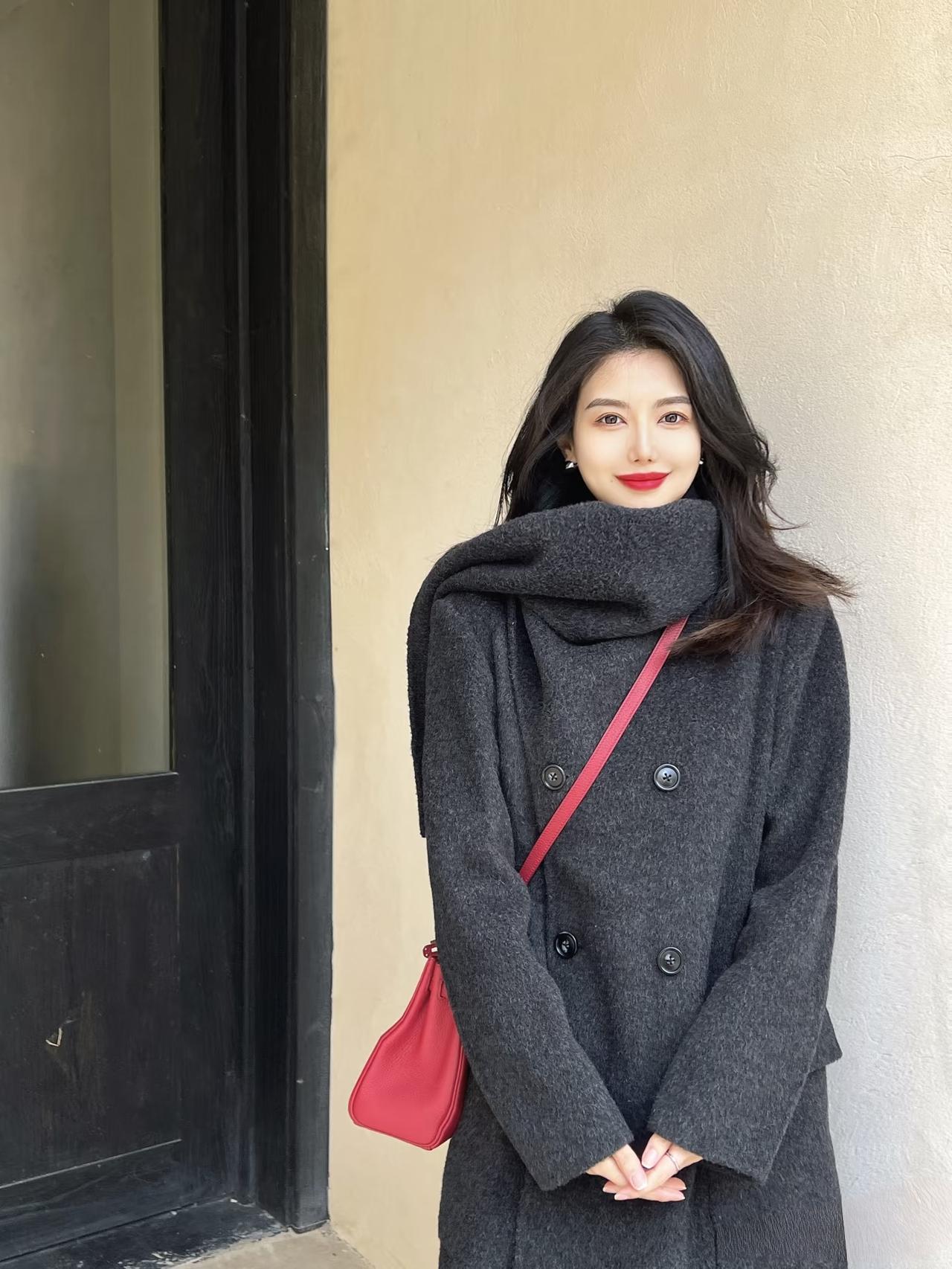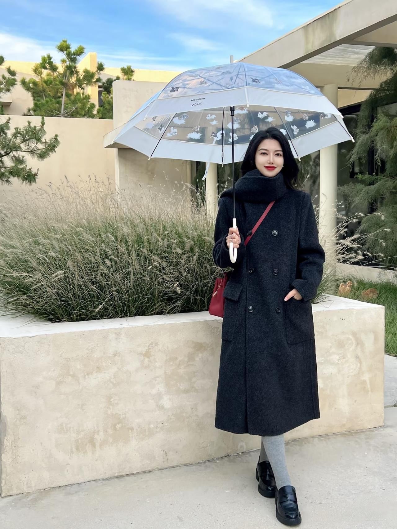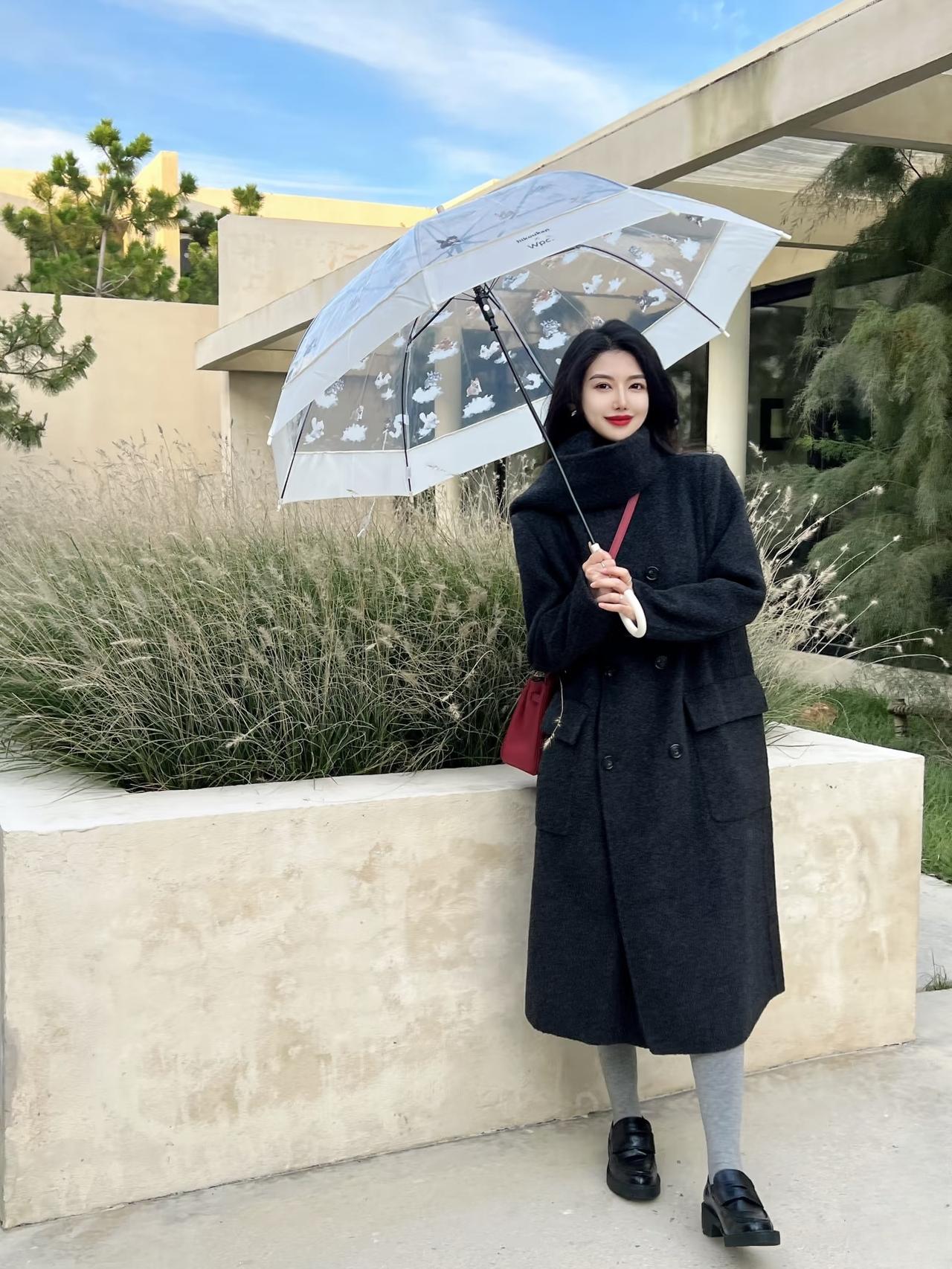 有哪些女生日常好看穿搭可以借鉴深灰色长款大衣,浅灰色厚裤袜,黑色皮鞋,既保暖又时尚好看!