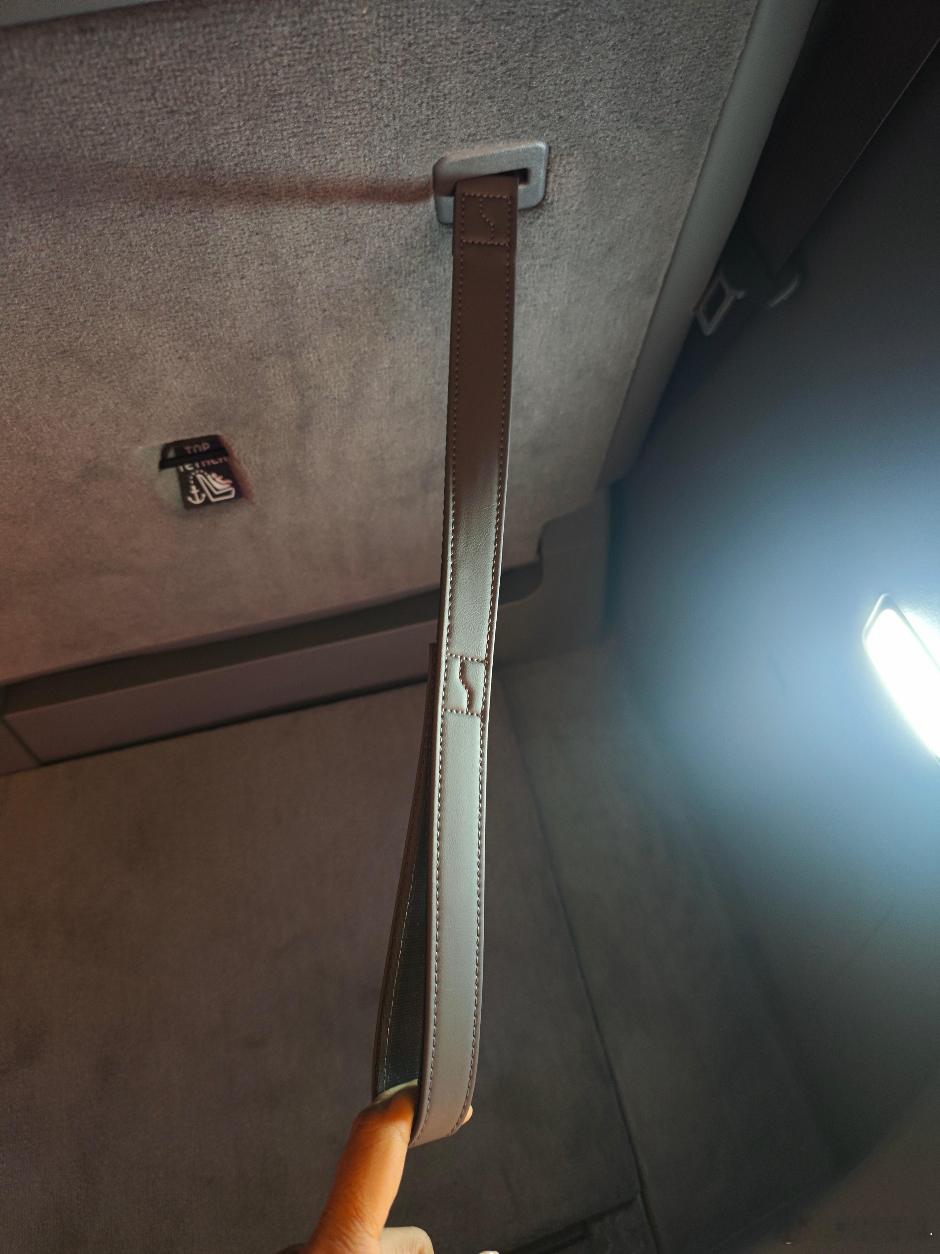 极氪009第三排座椅放倒拉带的细节,缝线做出了两个LOGO。极氪极氪009