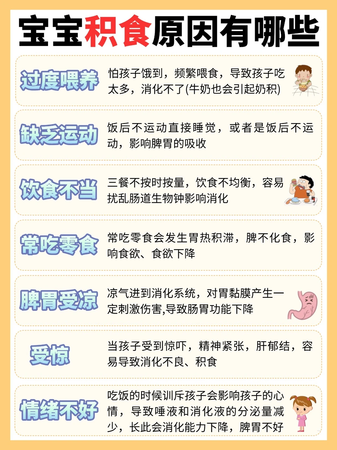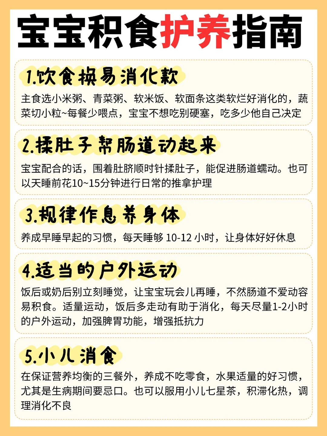 其实宝宝积食,原因大多在我们:喂养🍼太频繁、睡前吃太多、或者零食生冷吃多了,宝宝娇嫩的小肠胃根本忙不过来,食物就堆在那儿“罢工”了,时间一长,还容易生“内火”,眼屎多、小便黄也跟着来了。