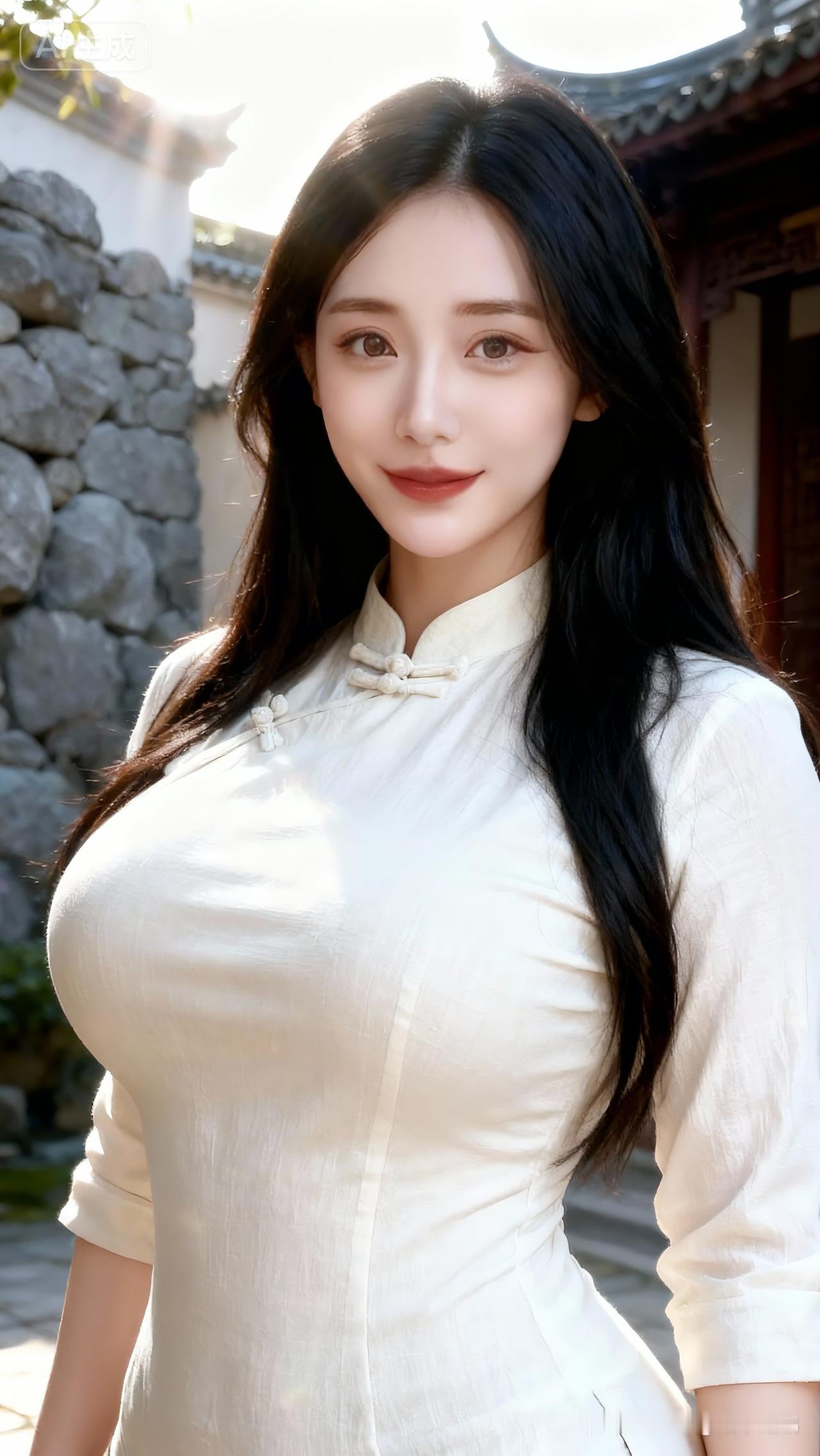 古典与现代的完美融合,优雅白裙下的东方美人。
