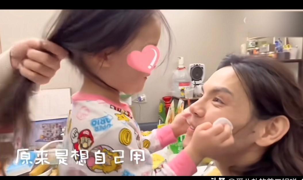 向佐半年没拍戏,在家做这件事。 他让女儿拿口红涂自己脸,坐着一动不动。 郭碧婷蹲