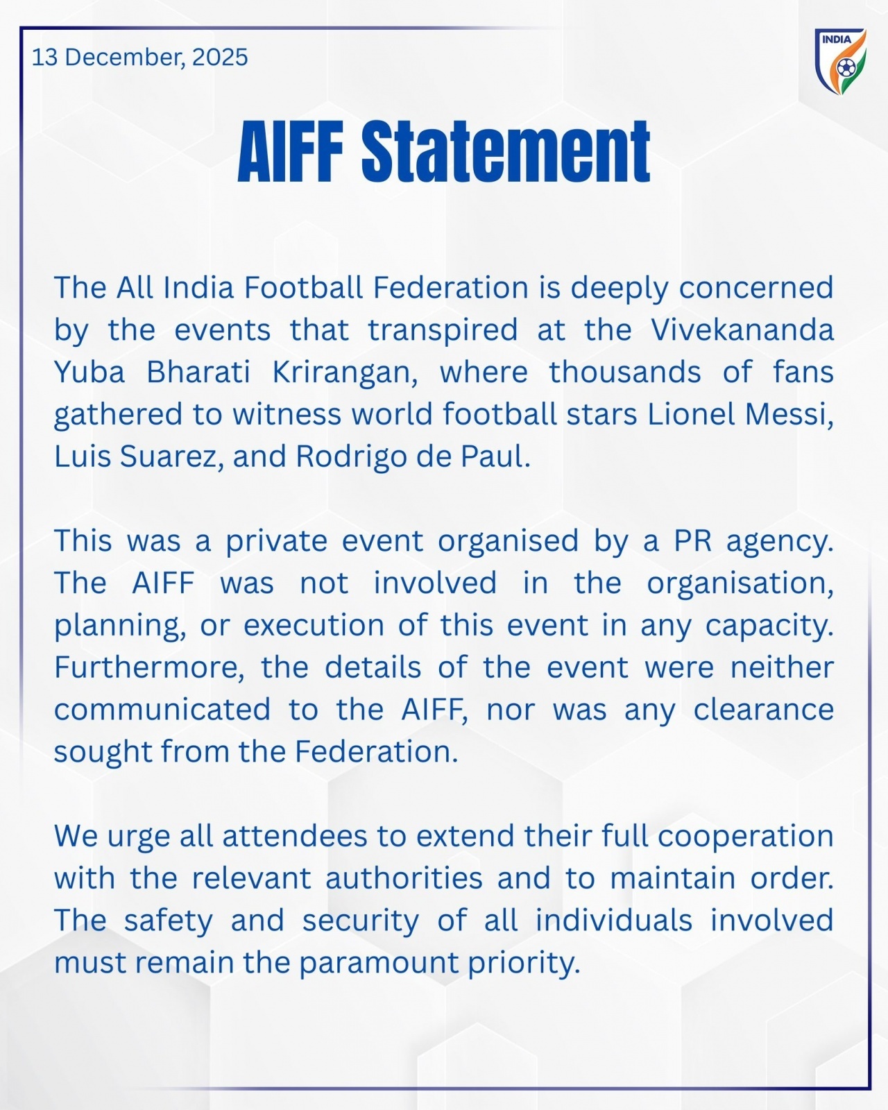 梅西印度行众所周知的原因,他的团队和印度足协一点责任没有。如此大型的活动印度足协会不知道,既没有敦促主办方审批,也没有知会主办方组织者事后被抓的利害关系,我们看到的只是在印度行之前准备工作有条不紊的进行着,20多天立起来的巨大雕像,见面会和见面价格的全面宣传和官宣后整个网络的流量跟进。然而印度足协一纸声明最后担责的却只有主办方🤣🤣🤣
