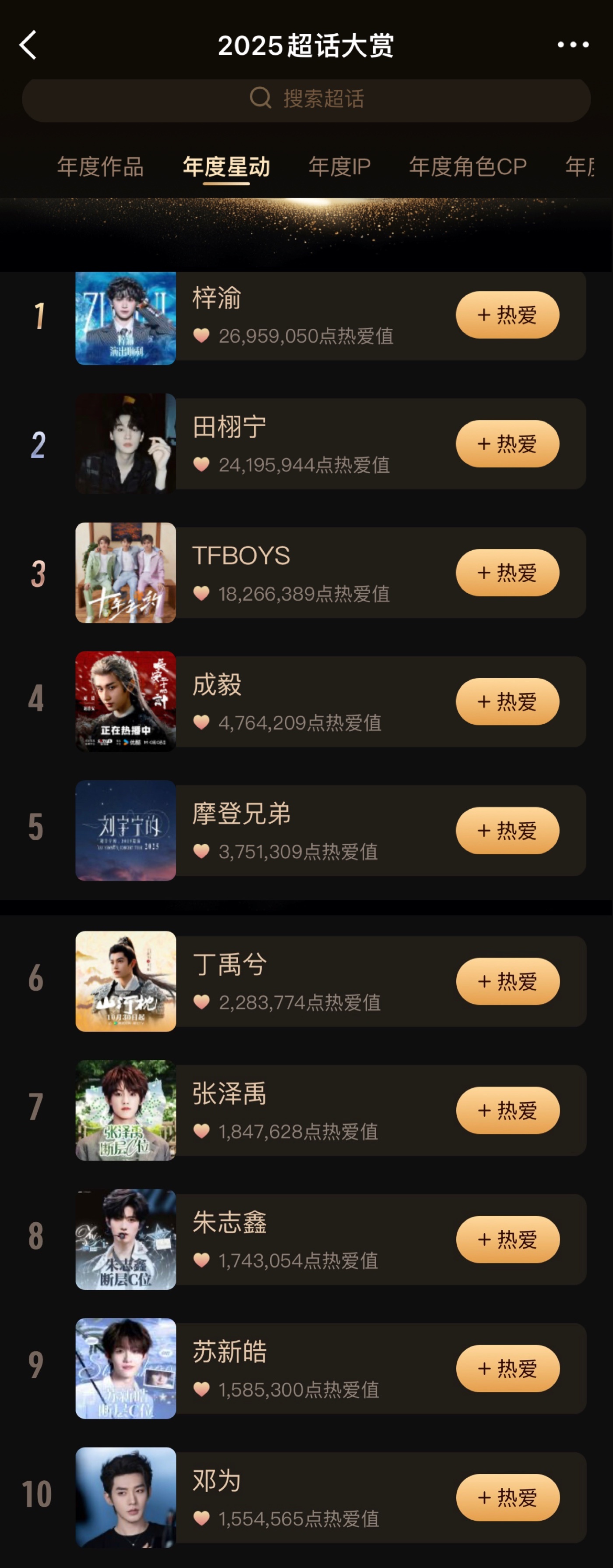 超话大赏投票登陆少年前十占三张泽禹、朱志鑫、苏新皓