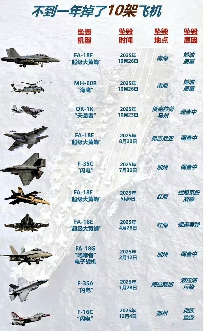 不到一年摔10架军机,美军这操作直接把“坠机大户”印度甩在身后…… 从F-35到超级大黄蜂,从南海到加州,燃油质量差、液压油污染、系统故障全成了坠机理由。 网友调侃“美国印度化”不是没道理,更有人戳破:摔飞机怕不是给军火商史密斯专员们“平账”的套路[灵光一闪] 就这军备状态,还想在西太平洋搞事,底气到底在哪[狗头] 军事 美军战机坠毁 美军一年摔10架军机 印度看了都摇头