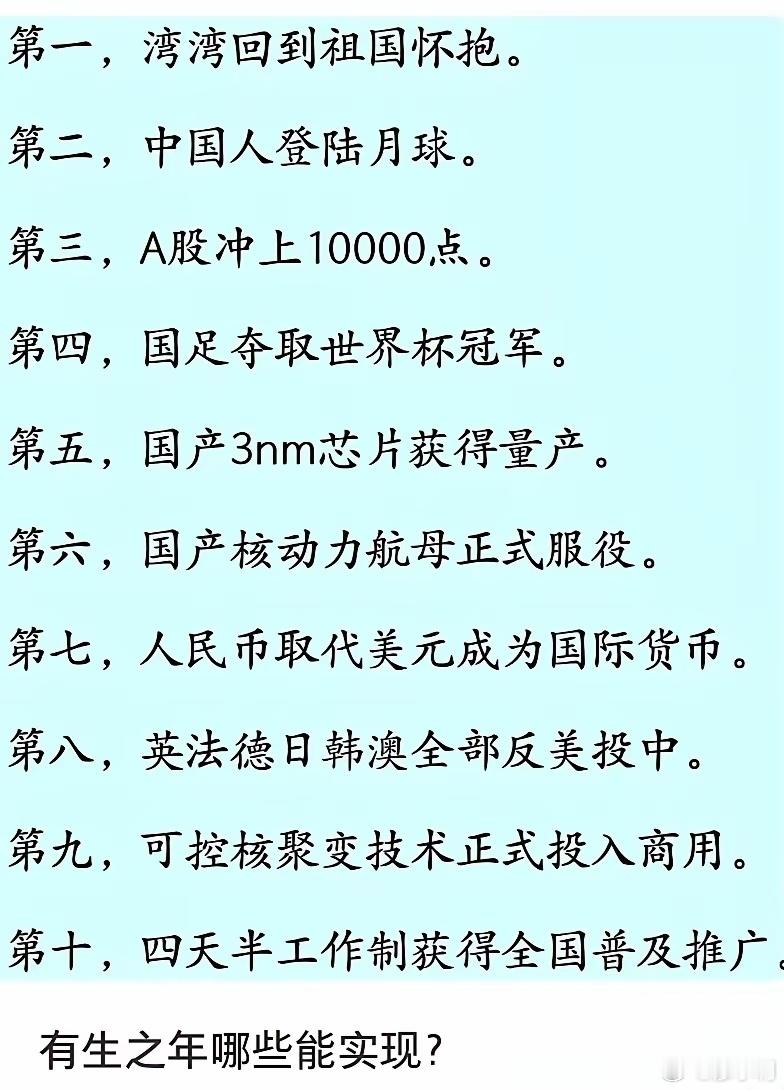 中国人的10大愿望,你觉得有生之年能看到哪几个能实现?