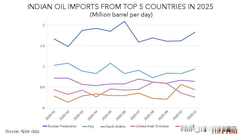 路透社12月11日报道,尽管美对俄主要油企实施制裁,但印12月自俄进口原油规模预计有望攀升至六个月新高,进口需求依然强劲。据航运情报机构开普勒(Kpler)数据显示,印12月自俄进口原油预计每日达185万桶,较11月每日183万桶小幅上升,实现连续第三个月增长,创下自6月以来最高水平。其中,国有油企进口量约为每日90.4万桶。12月最大一批俄油卸载地为纳亚拉能源公司(Nayara Energy)旗下瓦迪纳港(Vadinar),到港量约为每日65.8万桶,远高于11月每日56.1万桶和2025年平均每日43.1万桶。考虑到该公司仓储能力仅约2000万桶,当前加速进口节奏恐难持续。印方或认为俄油大幅折扣足以抵消潜在政治风险。分析推测,纳亚拉公司或在战略性囤油,押注对俄油制裁将放宽,或更多买家愿意无视限制继续采购。相较而言,信实工业(Reliance Industries)大幅削减俄油采购,成为印油企特例,其锡卡港(Sikka)12月预计每日仅接收29.3万桶,较11月每日55.2万桶显著下降,远低于6月创下的年内高点每日82.6万桶。