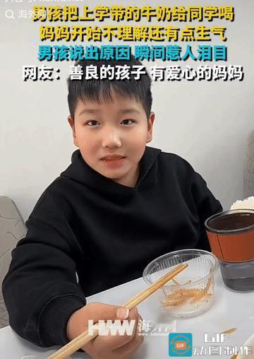 男孩自己啃着咸菜馒头,却把每天上学带的牛奶,雷打不动地塞给同班同学。 妈妈撞见好几次后,忍不住有点生气,拉着男孩说:“咱家条件也不宽裕,以后别再把牛奶给别人了,你自己喝。” 万万没想到,男孩低着头,小声说出的一句话,瞬间让妈妈红了眼眶,心里酸酸的不是滋味。 男孩叫小宇(化名),今年10岁,读小学四年级,家在县城边上的老旧小区。 爸爸在工地打零工,妈妈摆摊卖早点,起早贪黑忙活,一个月挣的钱刚够维持家用和小宇的学费。 尽管不宽裕,妈妈还是每天给小宇准备一个馒头、一小碟咸菜当午饭,再省出两块钱,买一盒纯牛奶让他带着,补补营养。 上周三中午,妈妈路过学校,想给小宇送把伞,远远就看见他蹲在操场角落,手里拿着馒头啃得香,面前站着个瘦瘦的男孩。 小宇把书包里的牛奶掏出来,撕开封口递过去,还笑着说:“快喝,今天的还是热的,我妈早上特意放微波炉转了圈。” 那个男孩犹豫了一下,接过牛奶小口喝着,小宇则低头继续啃馒头,就着怀里揣的咸菜,吃得津津有味。 妈妈当时没上前,心里却犯了嘀咕:这孩子,自己舍不得喝,倒大方给别人,咱家的钱也不是大风刮来的。 之后几天,妈妈特意留意,发现小宇每天都把牛奶给那个男孩,有时还会把自己的馒头分一半出去。 周五晚上,小宇刚放学回家,妈妈就把他叫到身边,语气带着点责备:“小宇,妈妈问你,你为啥总把牛奶给别人?” 小宇愣了一下,眼神有点闪躲,支支吾吾说不出话。 妈妈接着说:“咱家条件你也知道,妈妈和爸爸挣钱不容易,那牛奶是给你补身体的,以后别再送别人了,听见没?” 小宇低下头,手指抠着衣角,好一会儿才小声说:“妈妈,浩浩他没有妈妈,他爸爸腿不好,家里没人给他买牛奶。” 妈妈心里咯噔一下,追问起来,才知道那个男孩叫浩浩,是小宇的同桌。 浩浩三岁的时候,妈妈就走了,一直跟着爸爸过,去年他爸爸在工地干活摔断了腿,没法再干重活,家里日子过得特别难。 “上次我看见浩浩中午就吃了个干硬的窝头,连口水都没有,他说他爸爸没钱给他买饭。”小宇的声音带着哭腔。 “我有妈妈疼,有牛奶喝,浩浩什么都没有,我把牛奶给他,他就能少饿一点。” 听完小宇的话,妈妈再也忍不住,眼泪掉了下来,一把抱住小宇:“是妈妈不好,妈妈不该说你,你做得对。” 她没想到,10岁的孩子竟然这么懂事,还这么有爱心,自己只想着家里的难处,却忽略了别人的困境。 当天晚上,妈妈特意多做了两个鸡蛋,还蒸了肉包子,让小宇第二天带给浩浩。 她还跟小宇说:“以后你每天带两盒牛奶,你和浩浩一人一盒,午饭妈妈多准备点,也分浩浩一份。” 小宇听完,眼睛一下子亮了,抱着妈妈的脖子直撒娇:“妈妈你真好!” 第二天早上,小宇提着装满食物的饭盒去学校,见到浩浩就把东西递过去,浩浩看着里面的肉包子和牛奶,眼圈都红了。 他不好意思地说:“小宇,我不能要你的东西,你妈妈挣钱也不容易。” “没事,这是我妈妈让我给你的,我妈妈说,同学之间要互相帮助。” 小宇硬把饭盒塞到浩浩手里。 这件事很快被小宇的班主任知道了,班主任特意找小宇和浩浩了解情况,还联系了双方家长。