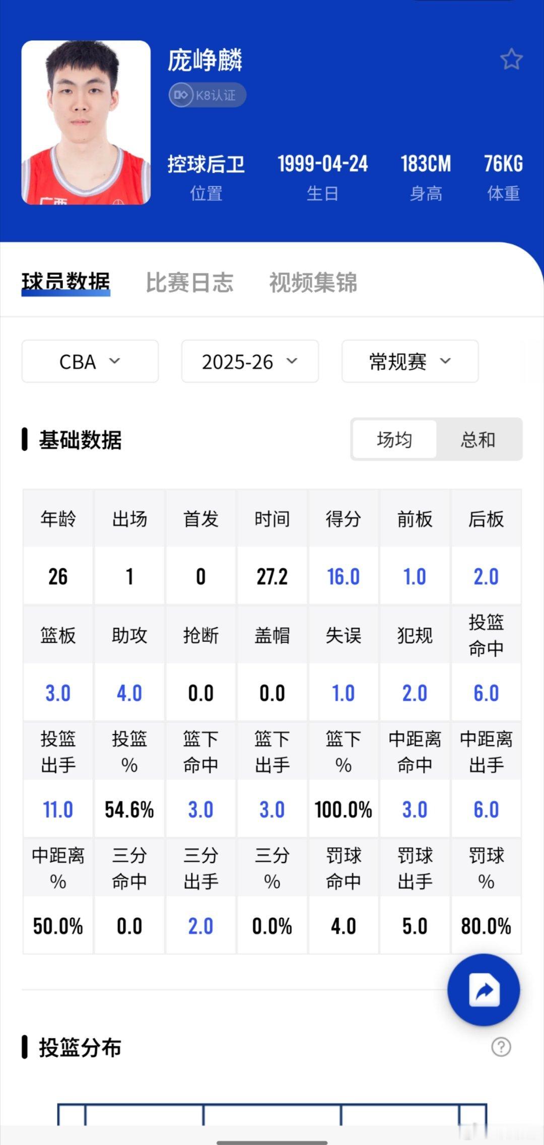 庞峥麟的第一场CBA比赛,他在球场上的综合实力还是不错的,控运能力很不错,第一场比赛面对首钢就能够拿16分已经说明他其实早该进CBA打了,CBA就需要这样在次级联赛练级成功的来更换一下新鲜血液,让CBA的混子球员再少一些。